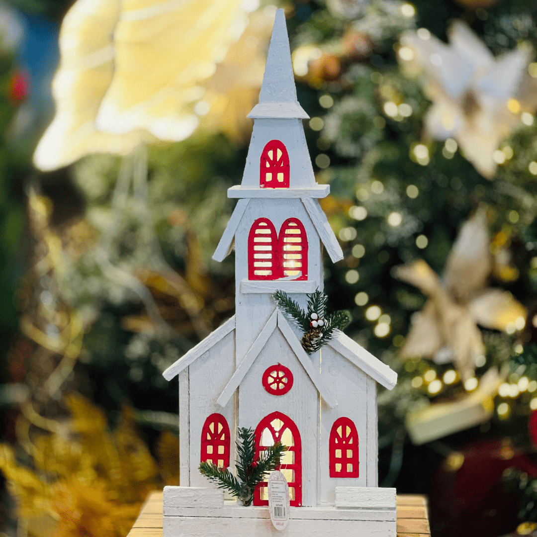 Casinha Com Led Vermelha e Branca de Madeira 56x25cm - Pilha