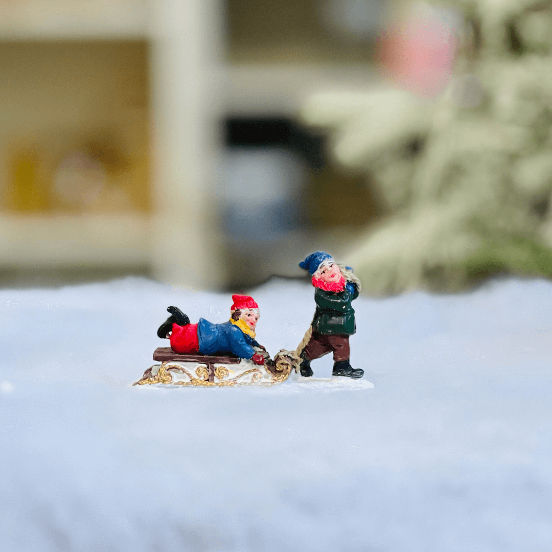 Cenário Natal Crianças no Trenó - 4,5x7,5x3cm