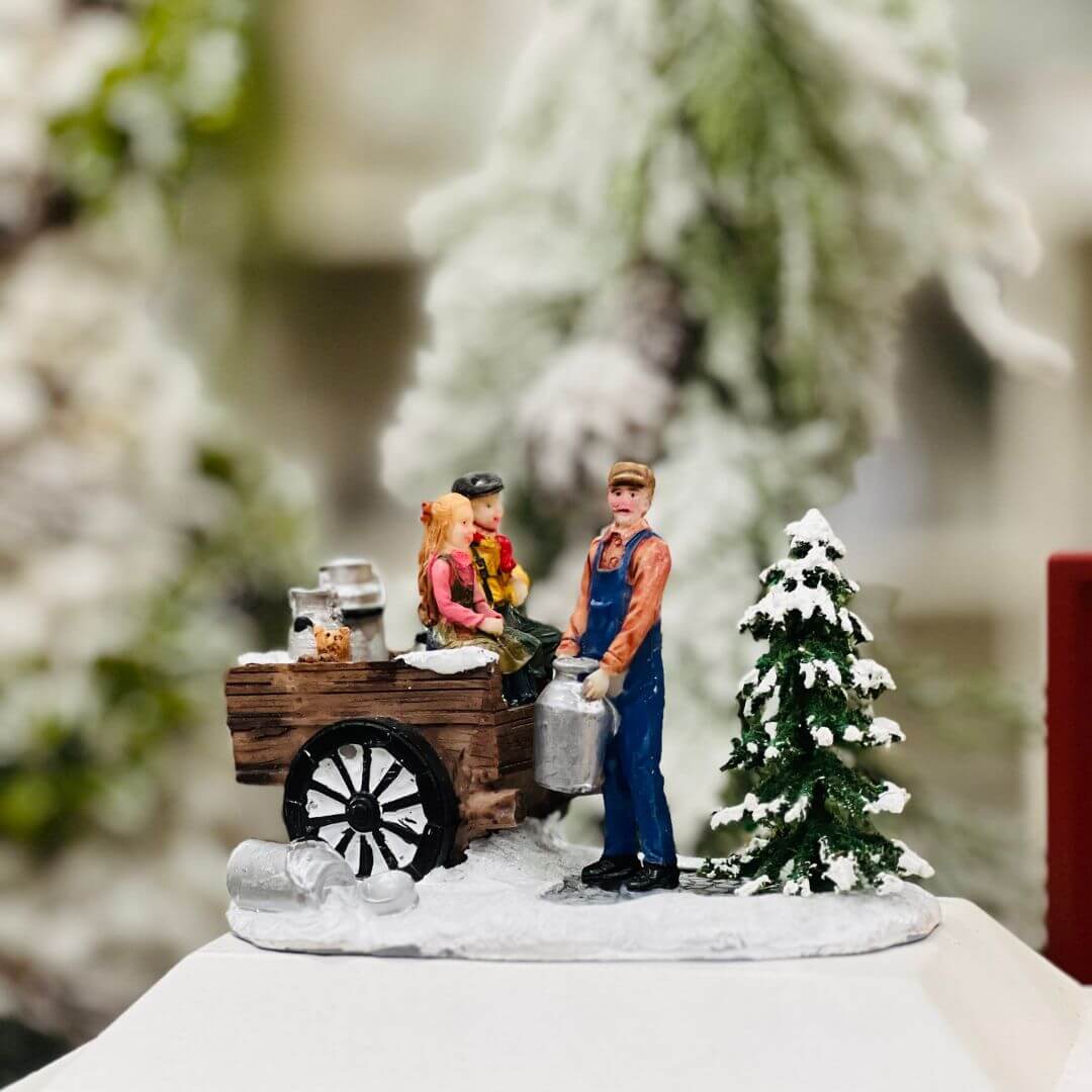 Este encantador cenário natalino retrata um momento especial entre pai e filhos, celebrando a união e o amor em meio à magia do Natal. Com ricos detalhes e acabamento delicado, é perfeito para complementar vilarejos natalinos, presépios ou composições decorativas temáticas.