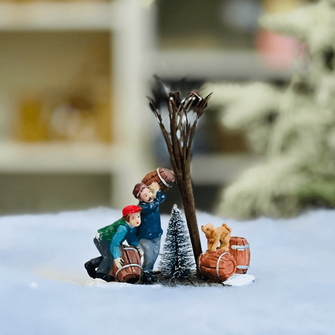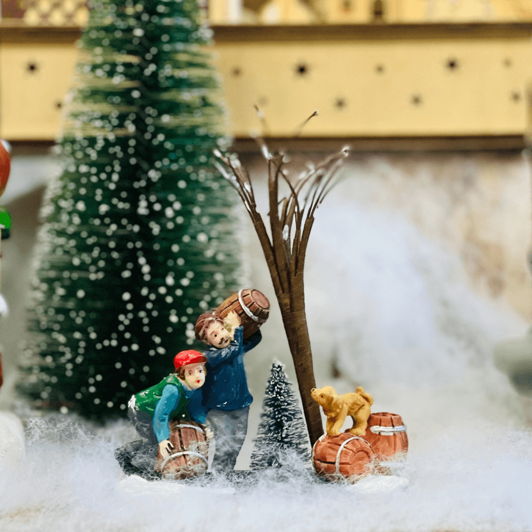 Cenário Natalino Homens Com Barril - 12,5x9x4,5cm