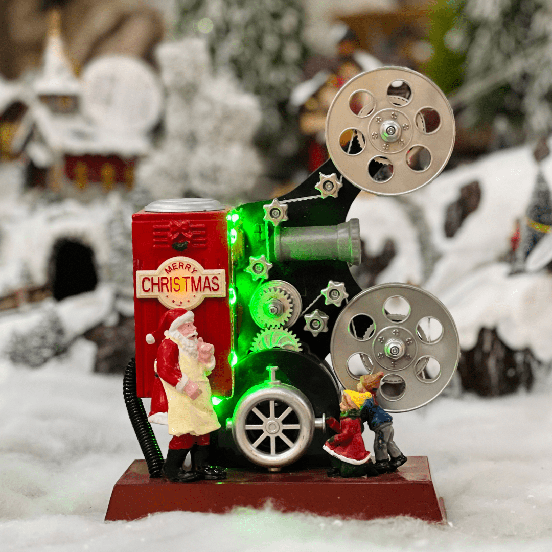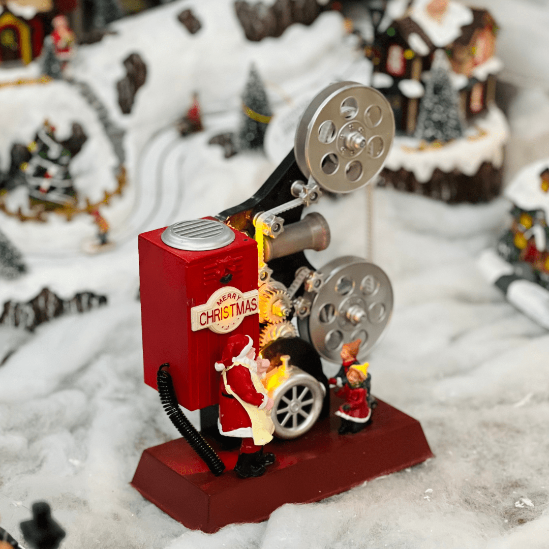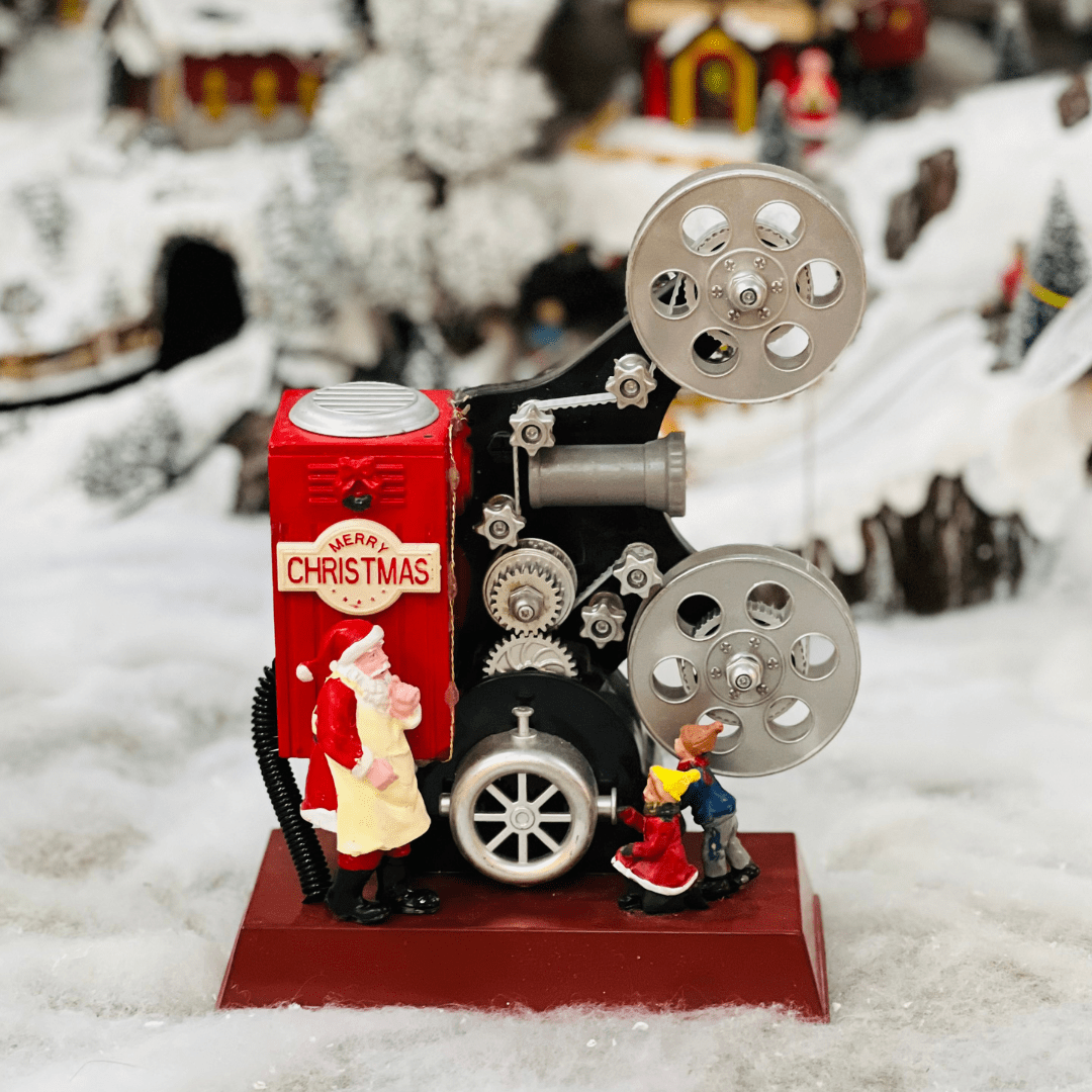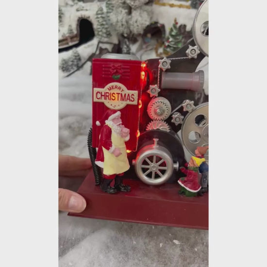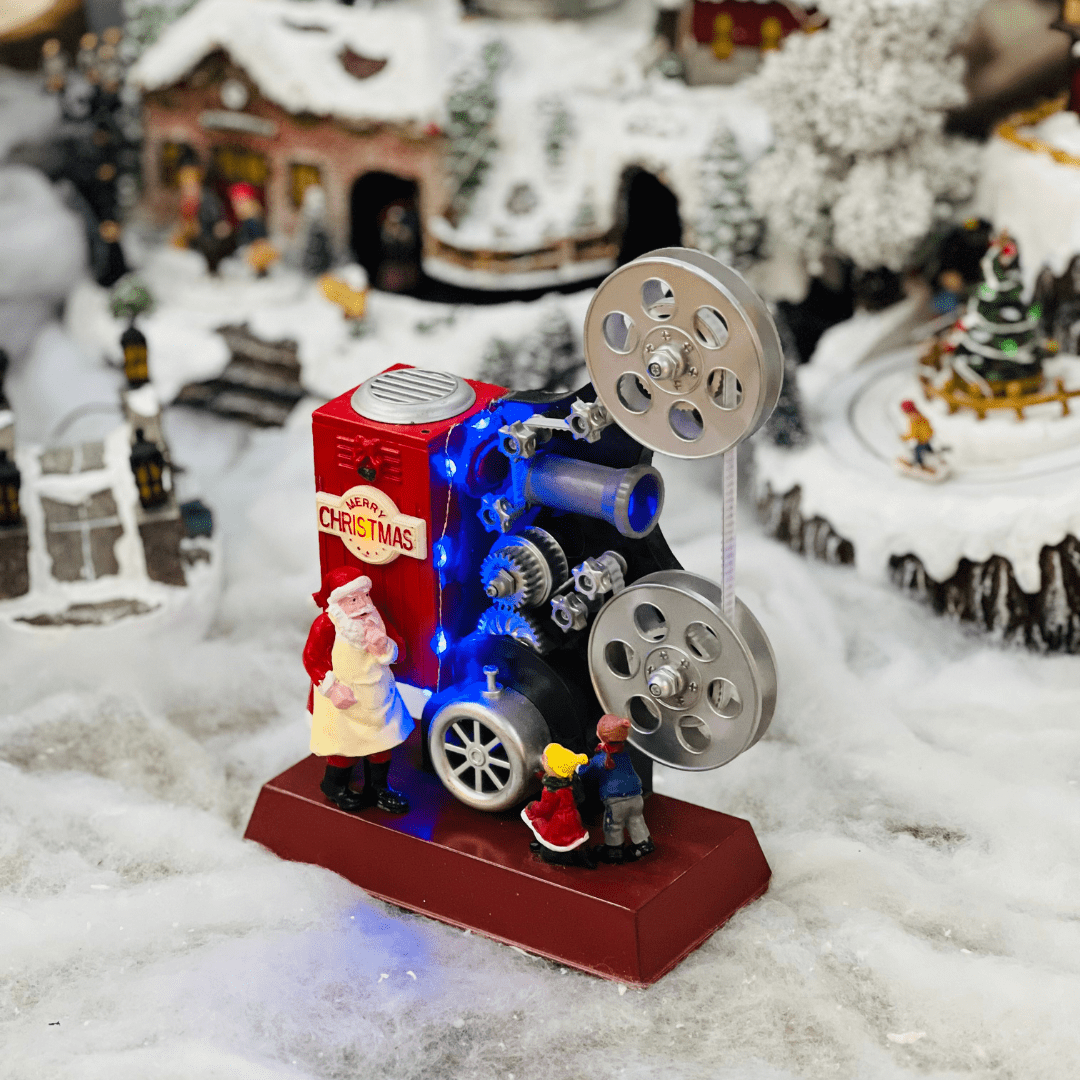O Cenário Natalino Projetor Com Som, Led e Movimento 22x17cm é um enfeite completo para decorar mesas, aparadores ou prateleiras com magia e movimento. A peça combina iluminação em LED, movimento e som, criando um efeito encantador que reproduz o clima natalino de forma dinâmica. Funciona à pilha, garantindo facilidade de posicionamento em qualquer ambiente sem necessidade de tomadas.