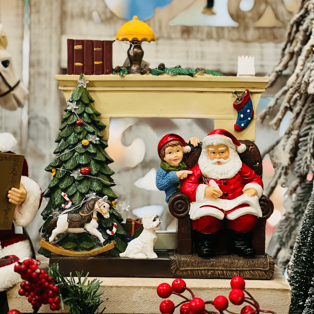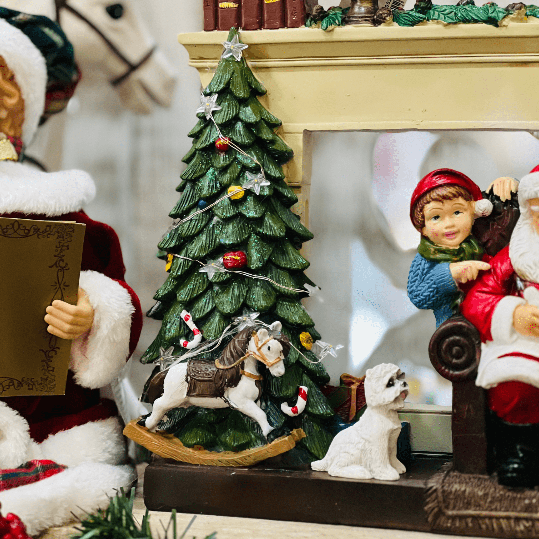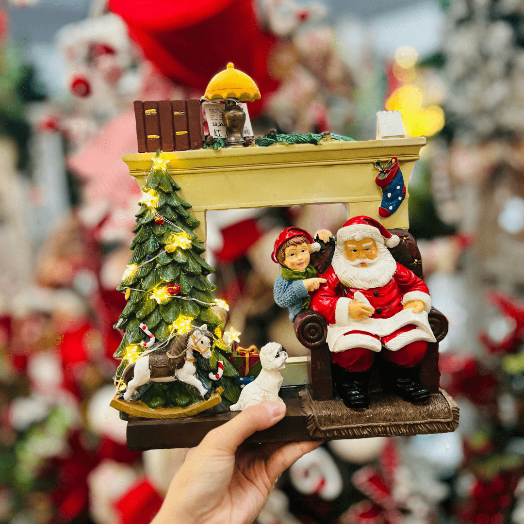 O Cenário Sala do Noel Com Led de Resina 30,5x27cm é uma peça decorativa detalhada e charmosa, perfeita para trazer o espírito natalino para sua casa. Equipado com LED, o cenário ilumina suavemente os elementos, destacando cada detalhe da sala do Noel e criando um ambiente acolhedor e festivo em mesas, aparadores ou estantes.