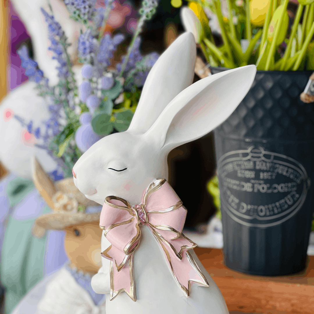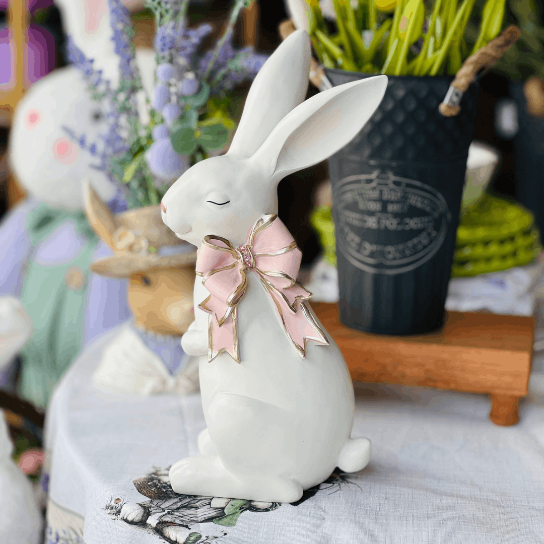 O Coelho com Laço Cute Family Branco e Rosa é uma peça encantadora para compor a decoração de Páscoa com delicadeza e charme. Com design decorativo e detalhe de laço em tons de branco e rosa, traz um toque suave e harmonioso ao ambiente. Ideal para mesas, aparadores, nichos e composições temáticas, valorizando a decoração sazonal com elegância e personalidade.