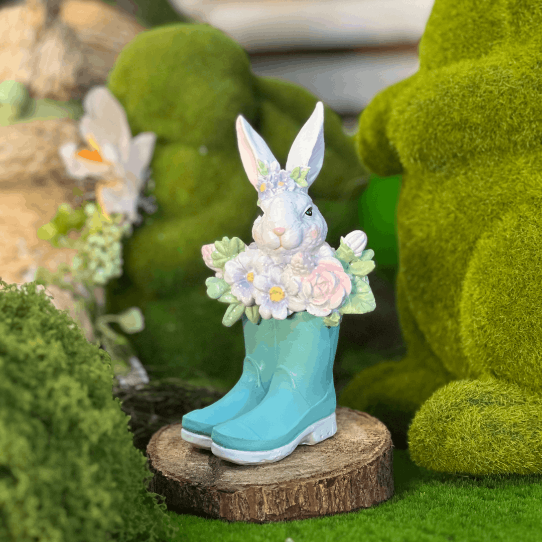 Coelho na Botinha Azul de Resina 15cm