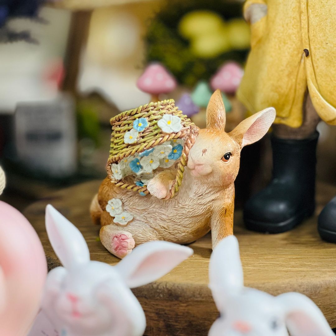 Coelho Sentado Com Cesta de Flores - 9cm