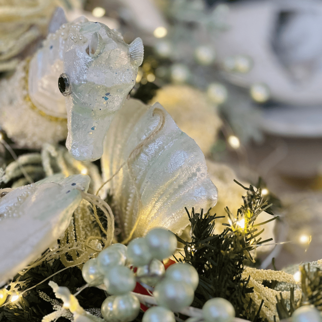 A Concha Decorativa Natal Náutico 13,5x10x14cm é uma peça encantadora que une o charme do estilo marítimo ao espírito natalino. Ideal para compor arranjos, enfeitar mesas ou árvores temáticas, acrescenta um toque criativo e delicado à decoração, destacando-se pelo formato detalhado e acabamento cuidadoso.