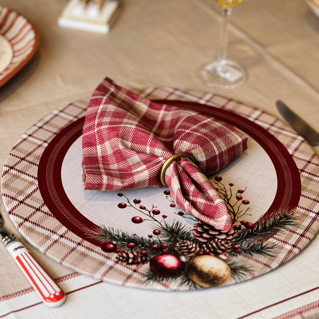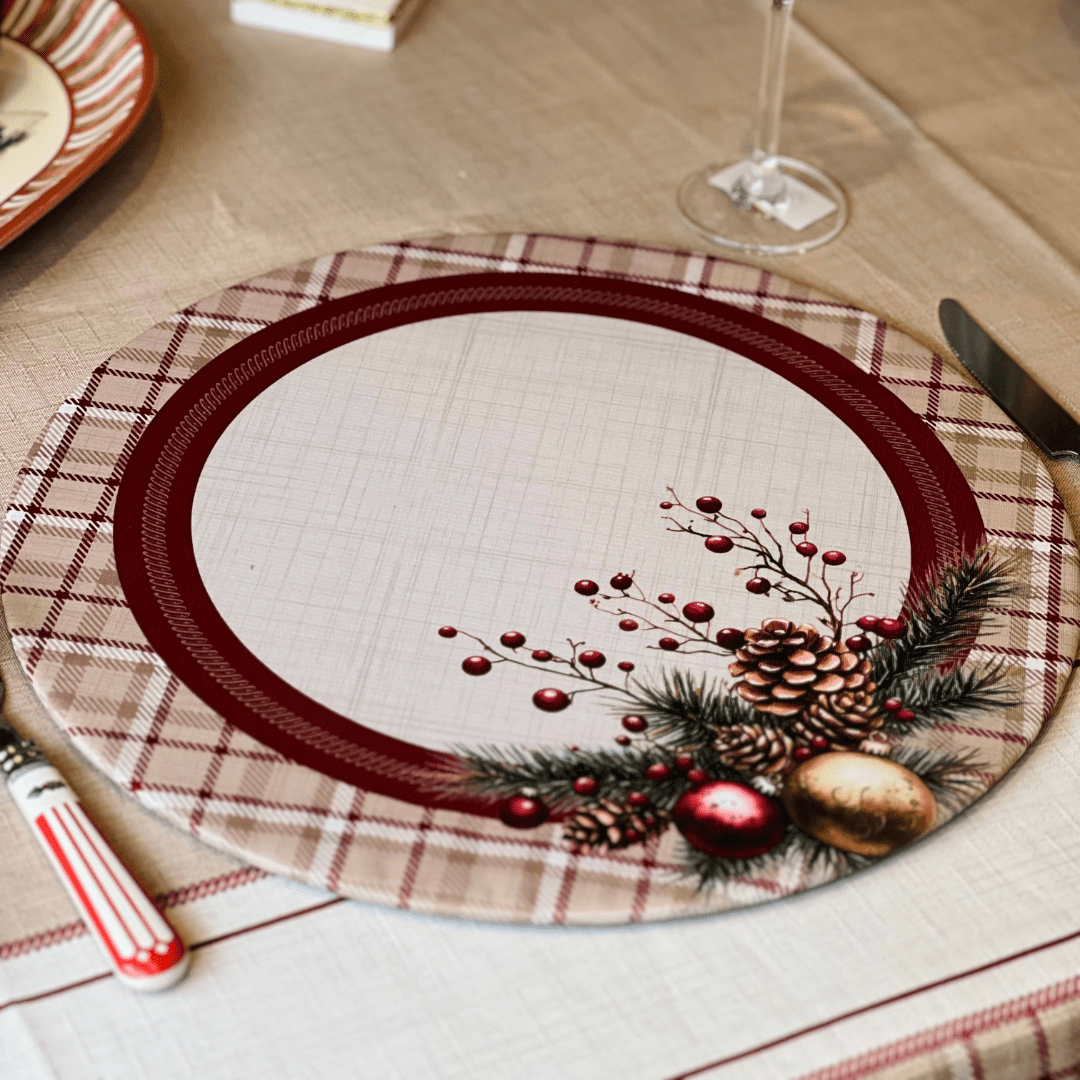 Conjunto 2 Capas para Sousplat Natalino Pinhas e Encanto 35x35cm