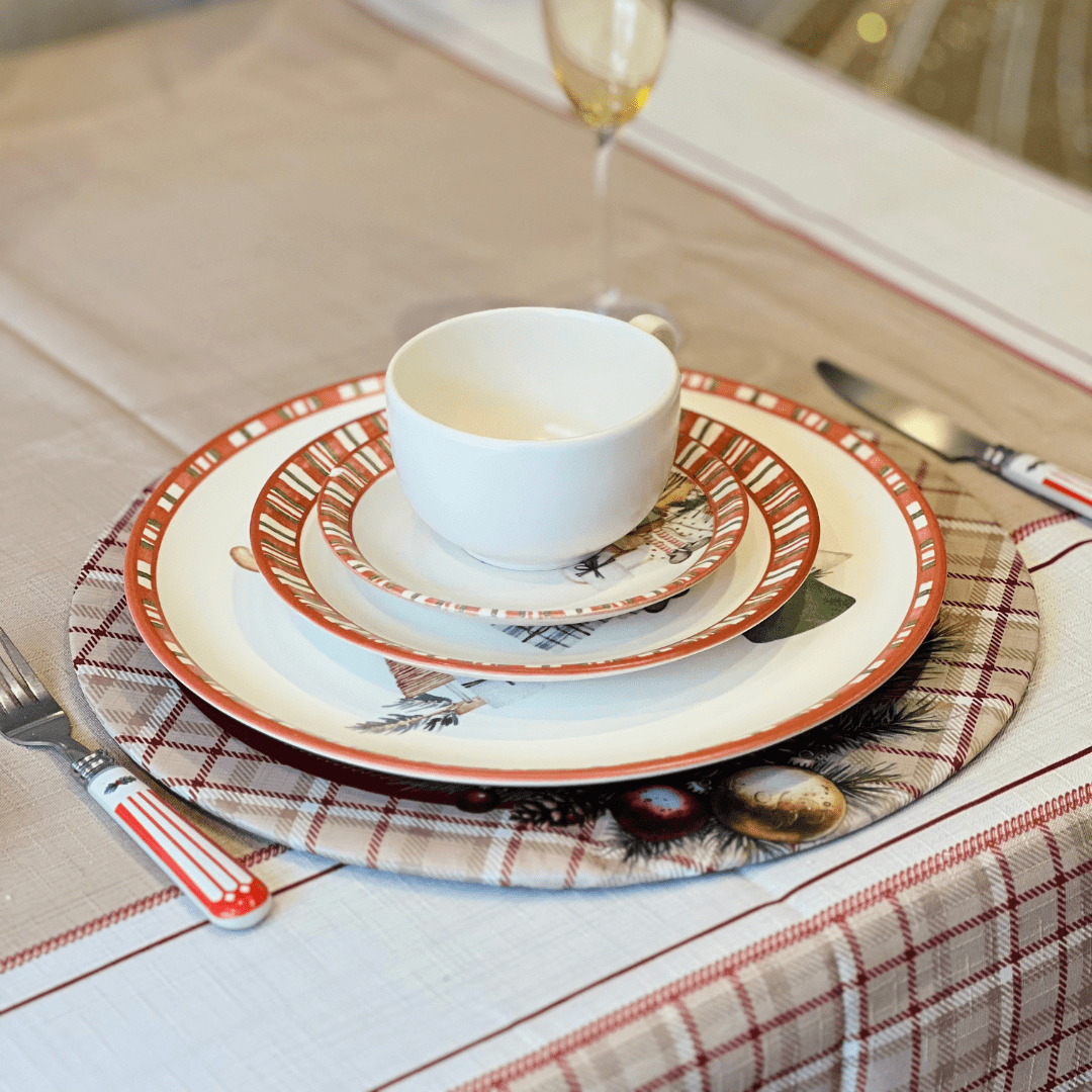 O Conjunto de Capas para Sousplat Natalino Pinhas e Encanto é perfeito para compor mesas festivas com elegância e charme durante as celebrações de fim de ano. Com estampa temática que une pinhas e detalhes natalinos, deixa a decoração mais sofisticada e acolhedora. Cada capa mede 35x35cm, tamanho ideal para cobrir sousplats e renovar a mesa de forma prática e criativa. Produzidas em tecido de qualidade, são resistentes, duráveis e fáceis de lavar, garantindo beleza e funcionalidade para o dia a dia ou ocasiões especiais.