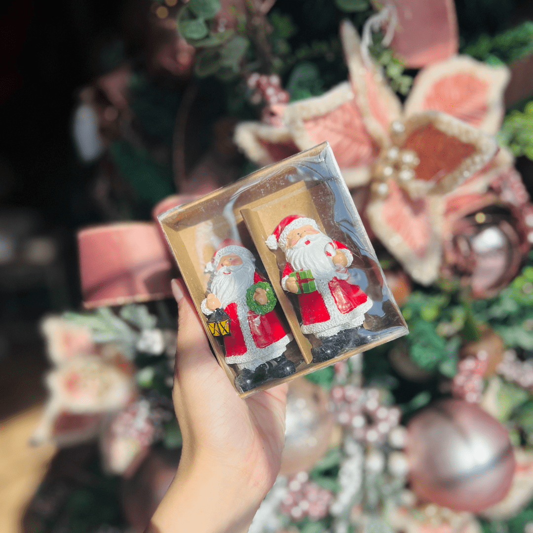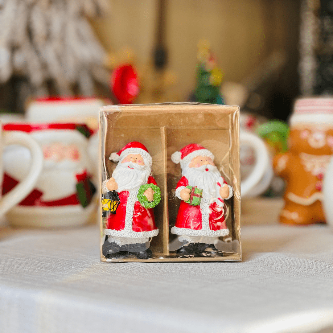 Conjunto 2 Papais Noéis de Resina 4,5x3,6x8,5cm