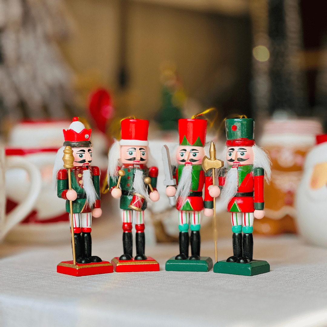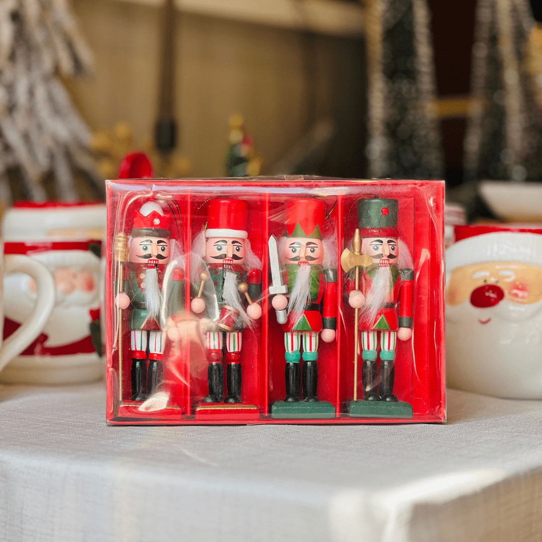Decore sua casa com tradição e charme usando este conjunto de 4 quebra-nozes natalinos de madeira, cada um com 14 cm de altura. Produzidos com detalhes delicados e acabamento refinado, são ideais para mesas, aparadores, estantes ou compor cenários natalinos, trazendo o espírito festivo para qualquer ambiente.
