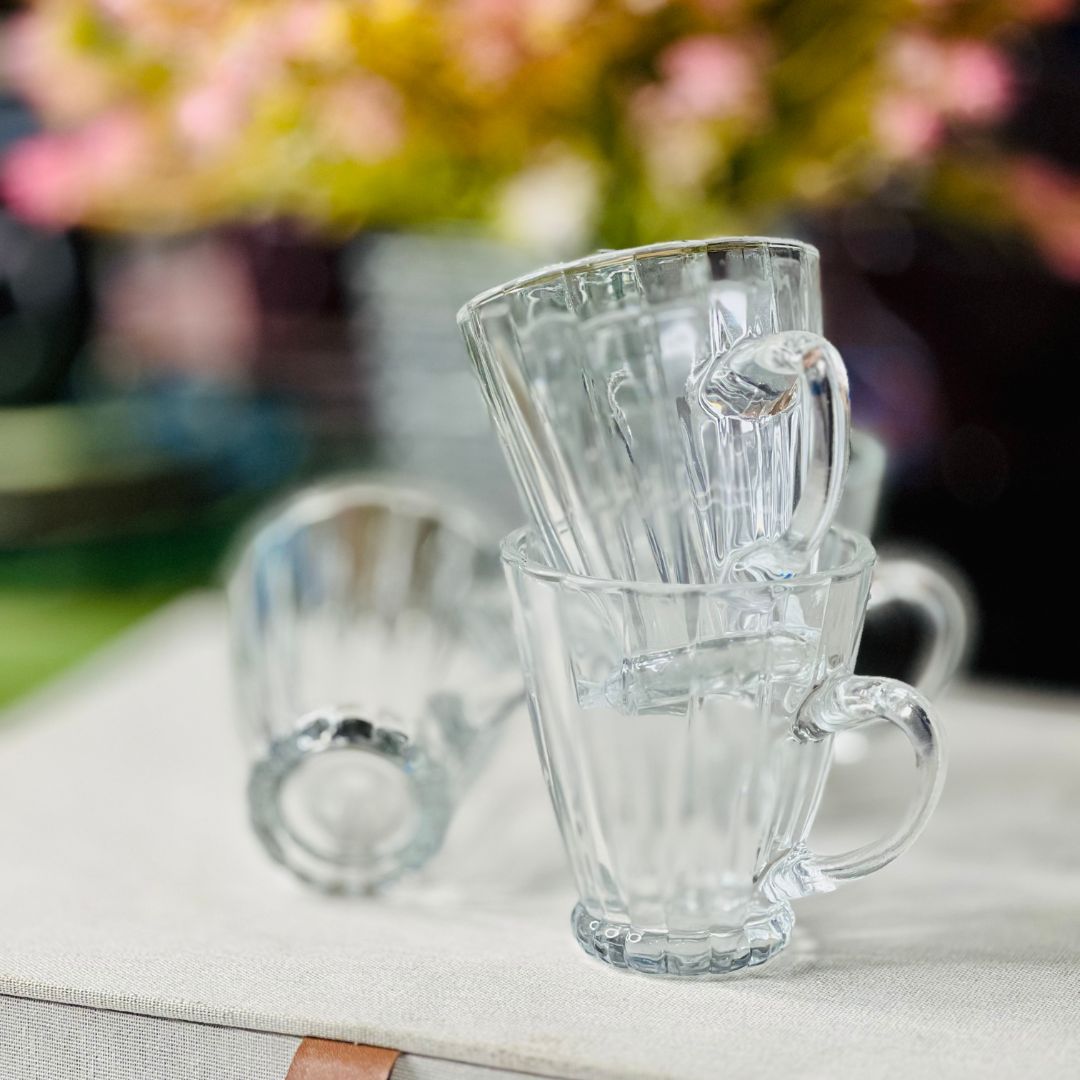 Contém: 4 Xícaras para Café de Vidro Radial.