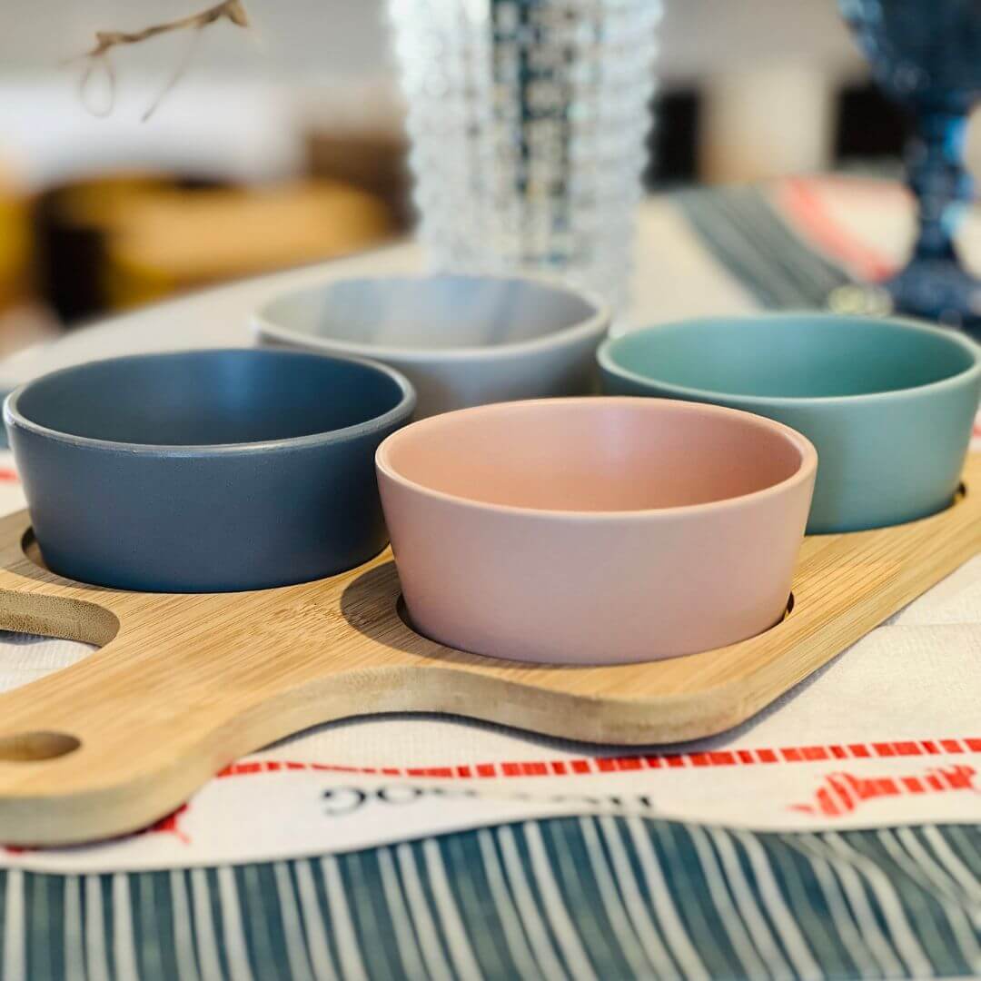 Prático e elegante, o Conjunto Petisqueira conta com uma bandeja de bambu e quatro potes perfeitos para servir petiscos, molhos, castanhas e acompanhamentos com charme e organização. Ideal para compor mesas despojadas ou sofisticadas, é funcional e valoriza a apresentação.