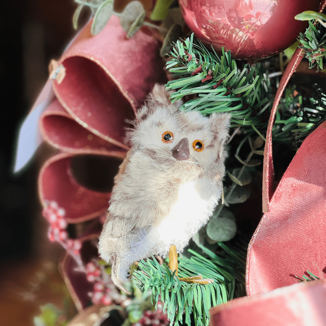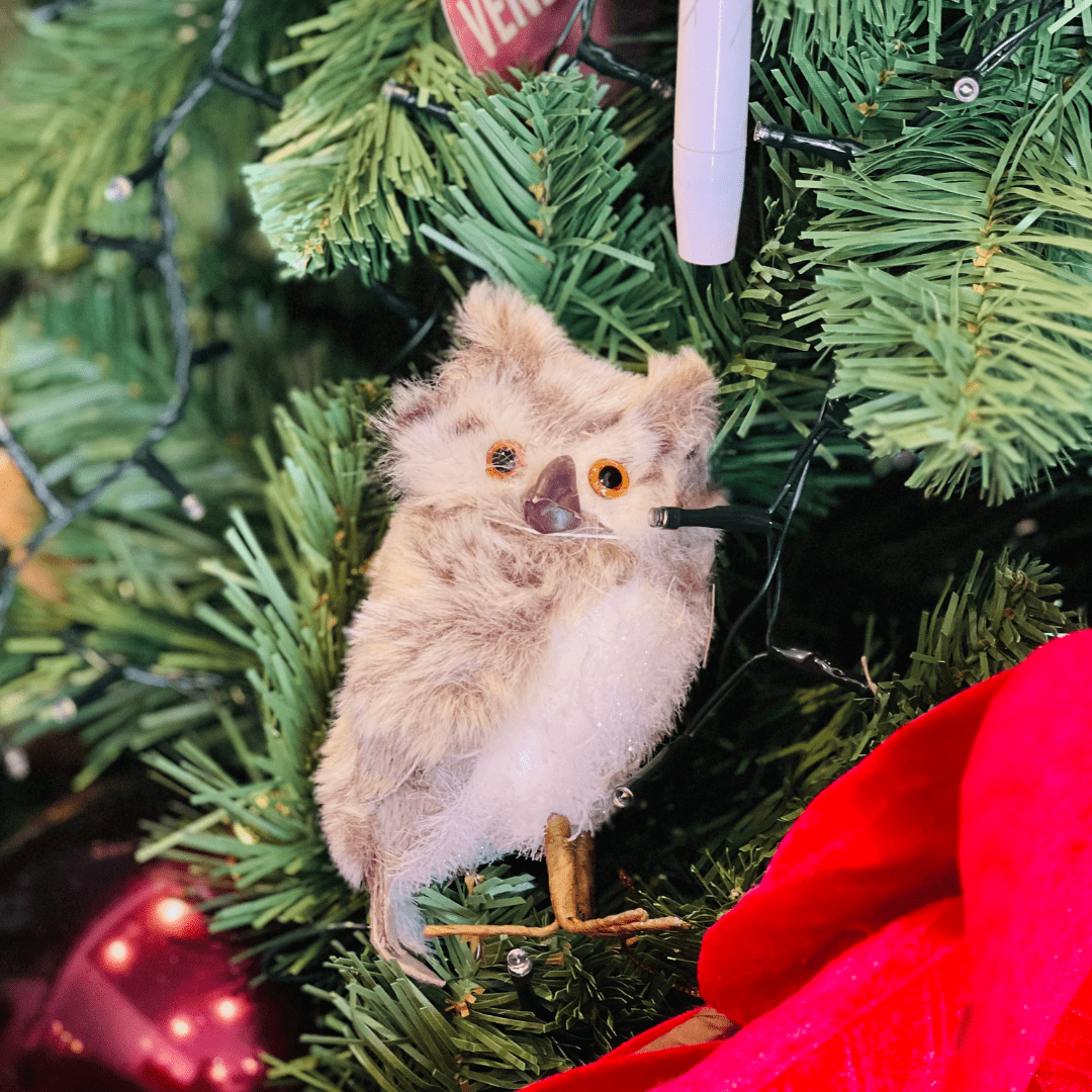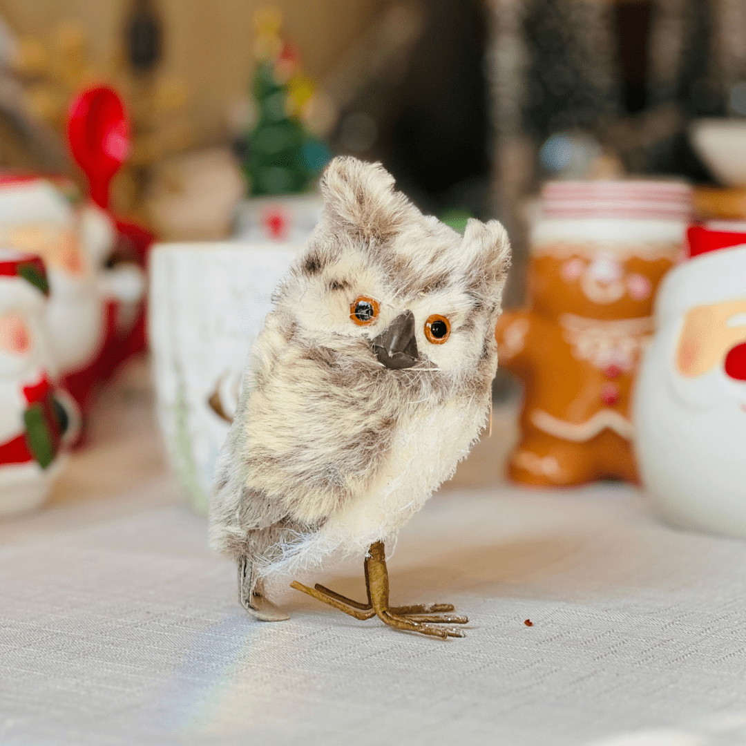 Encante sua decoração de Natal com esta corujinha natalina de 15 cm, produzida com detalhes delicados que transmitem fofura e charme. Ideal para mesas, aparadores, estantes ou como complemento da árvore de Natal, acrescentando um toque acolhedor ao ambiente.