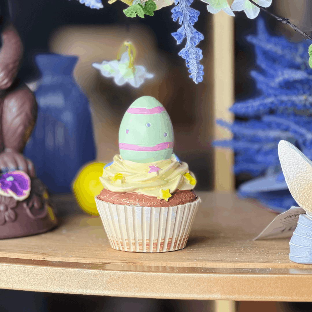 O Cupcake com Ovo Verde e Amarelo de Resina é uma peça decorativa delicada e criativa, perfeita para compor a decoração de Páscoa com um toque doce e divertido. Produzido em resina e com acabamento detalhado, apresenta um cupcake decorado com um ovo em tons de verde e amarelo, trazendo alegria e charme às composições. Ideal para mesas, aparadores, nichos e arranjos temáticos, valorizando a decoração sazonal com leveza e cor.