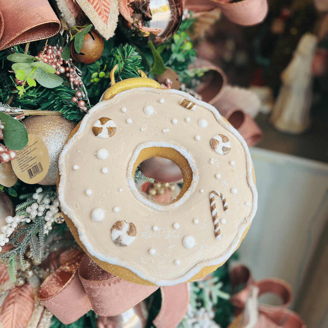 Adicione um toque divertido e festivo à sua decoração com este donut natalino para pendurar. Ideal para árvores de Natal, portas, guirlandas ou arranjos, ele traz cor e charme, criando um ambiente acolhedor e cheio de espírito natalino.