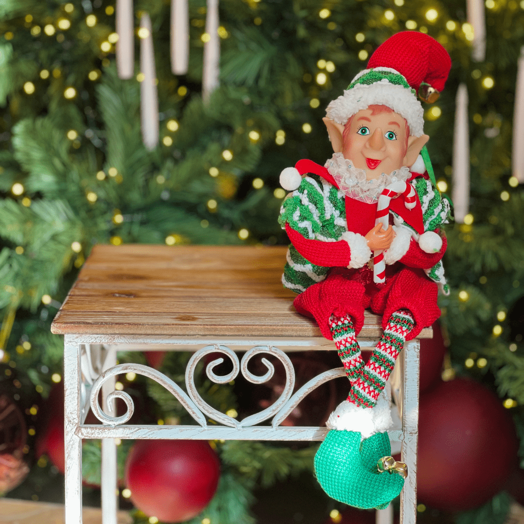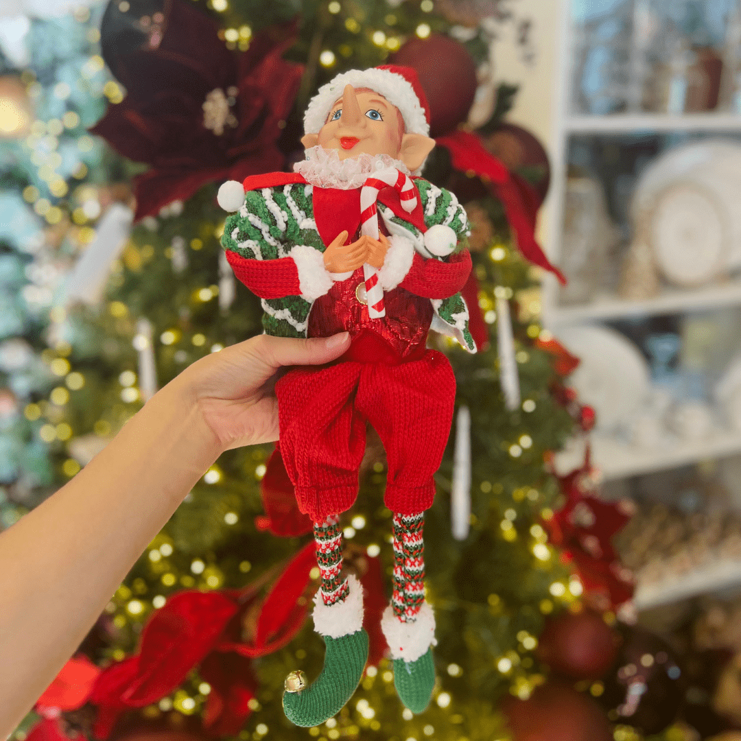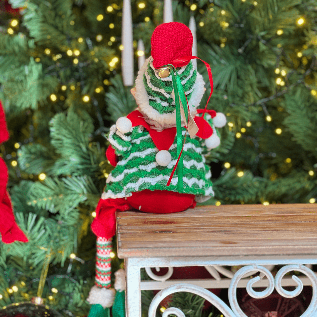Leve mais magia e encanto para sua decoração com este elfo natalino sentado segurando uma Candy Cane, nas cores vermelho e verde. Com design alegre e cheio de detalhes delicados, ele é perfeito para enfeitar poltronas, aparadores, mesas ou até mesmo degraus de escada, trazendo um toque lúdico e divertido para o ambiente.