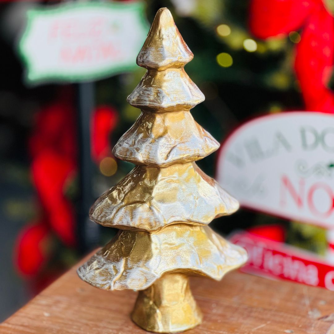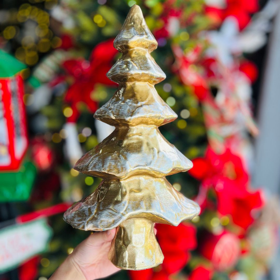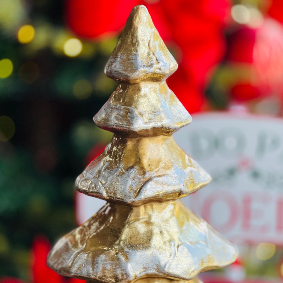 Este enfeite decorativo em forma de árvore na elegante cor ouro velho é perfeito para adicionar um toque de sofisticação à sua decoração natalina. Com 38cm de altura, ele se destaca em qualquer ambiente, seja em mesas, prateleiras ou como parte de uma composição festiva. Ideal para complementar sua decoração durante as festas de fim de ano.