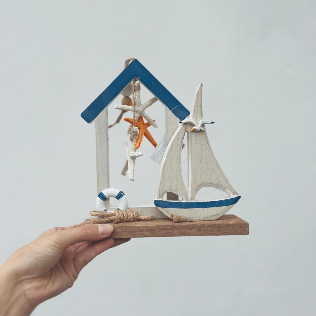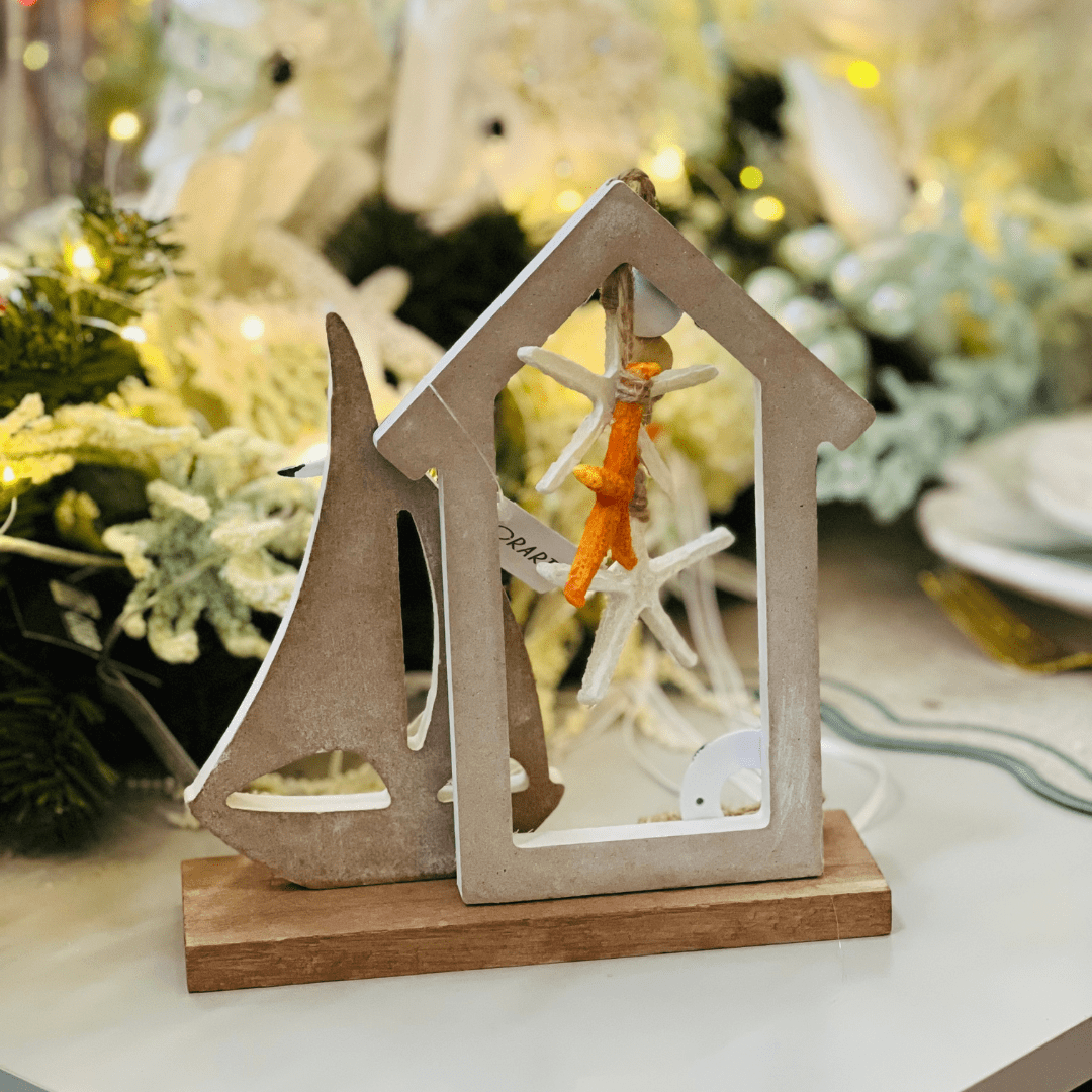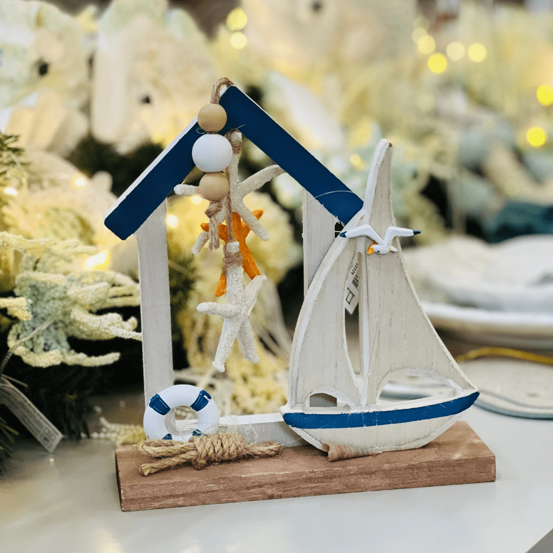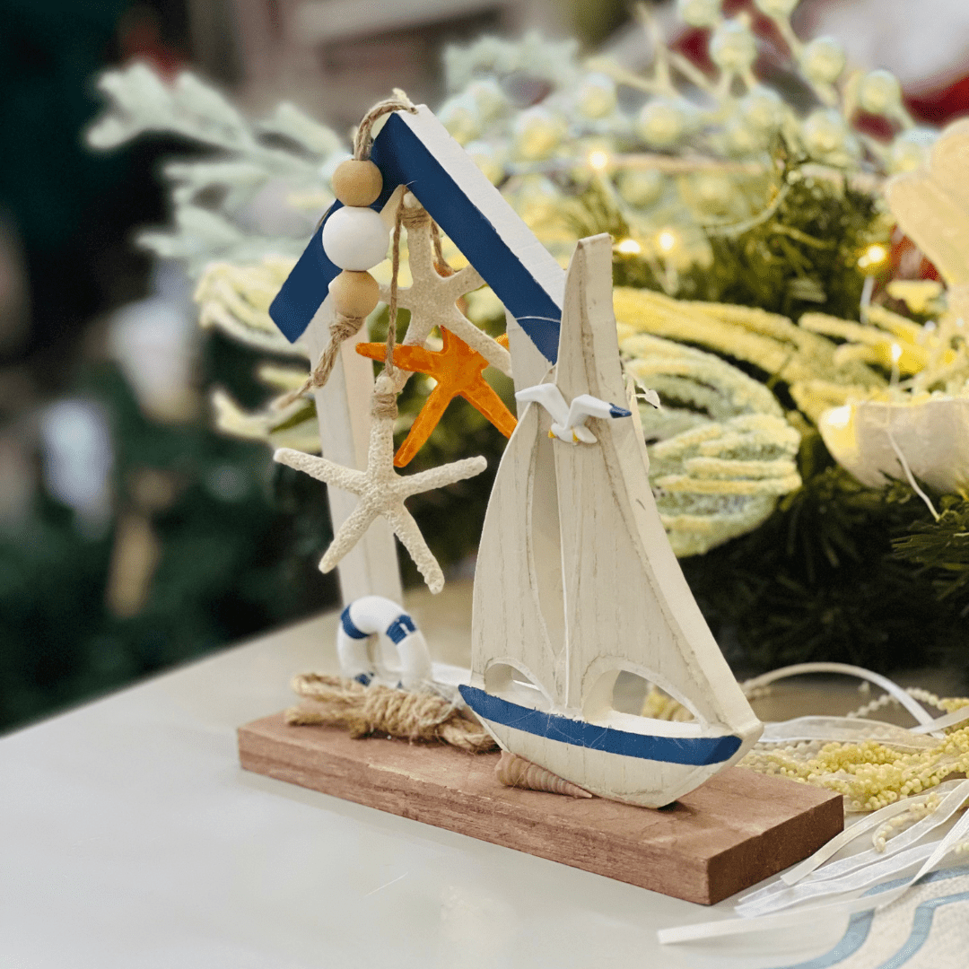 O Enfeite Natal Náutico de Madeira une o clima natalino com um toque marítimo encantador. Com detalhes inspirados no estilo náutico, é perfeito para compor decorações temáticas e trazer originalidade à sua árvore, guirlanda ou arranjos de Natal.