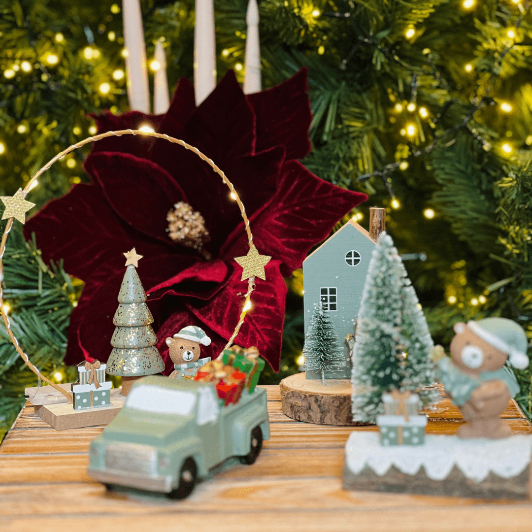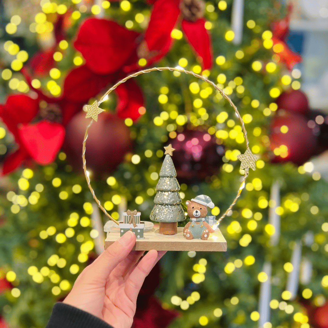 O Enfeite Natalino Árvore com Ursinho é uma peça encantadora que une a magia da árvore de Natal ao charme do ursinho decorativo. Com iluminação em LED, ele proporciona um brilho especial, trazendo ainda mais aconchego e encanto para a decoração natalina. Ideal para enfeitar mesas, aparadores ou composições temáticas.