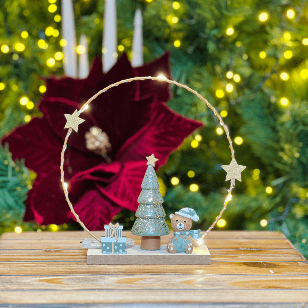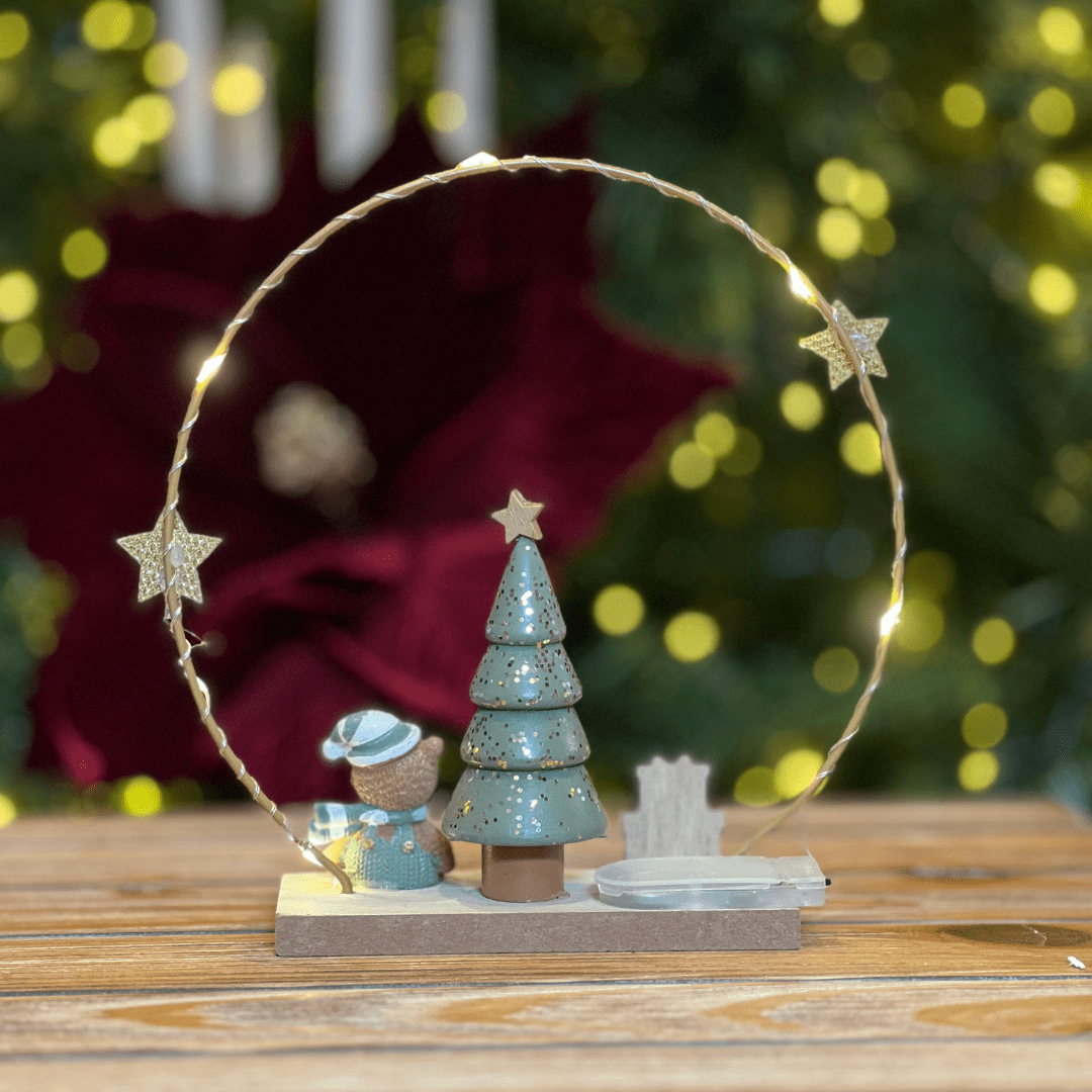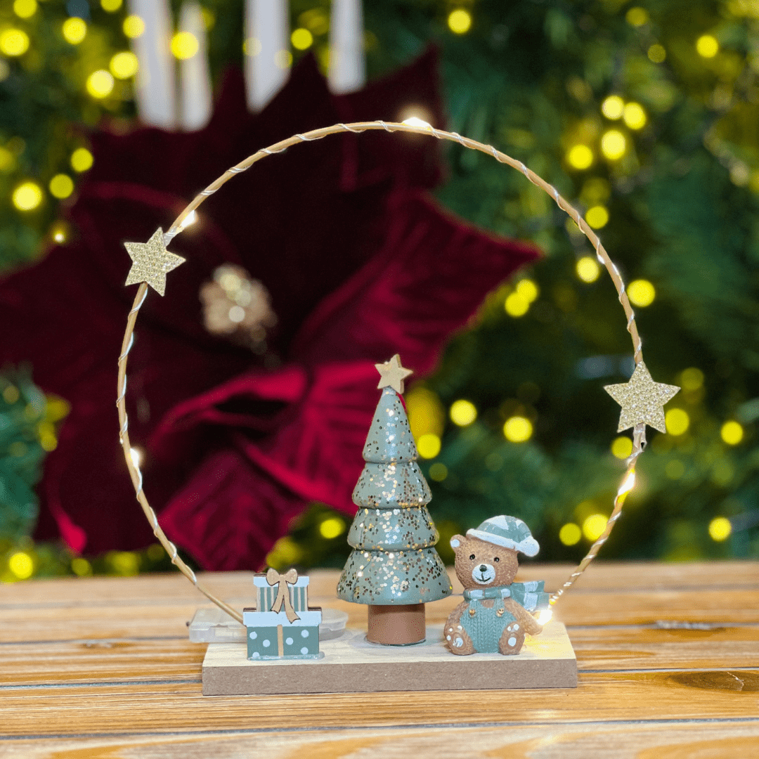 Enfeite Natalino Árvore Com Ursinho Verde Com Led 27x21x5cm