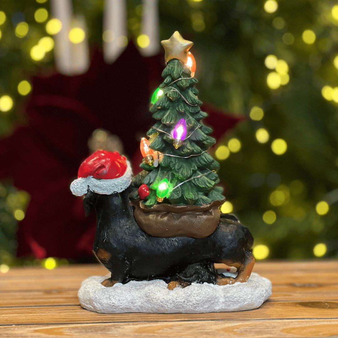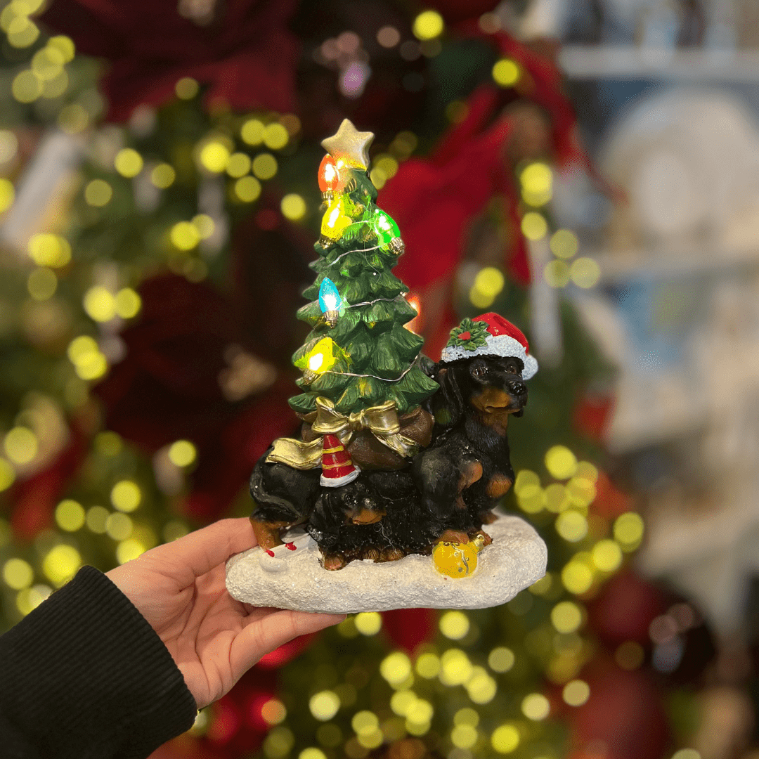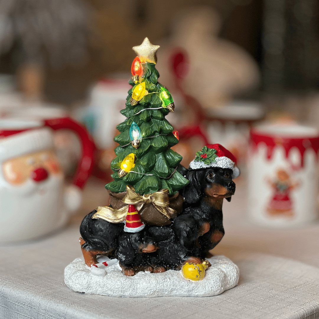 Adicione um toque divertido e encantador à sua decoração com este enfeite natalino de cachorros salsichas iluminados por LED. Produzido em resina, o item combina resistência e delicadeza nos detalhes, transmitindo alegria e originalidade ao ambiente.