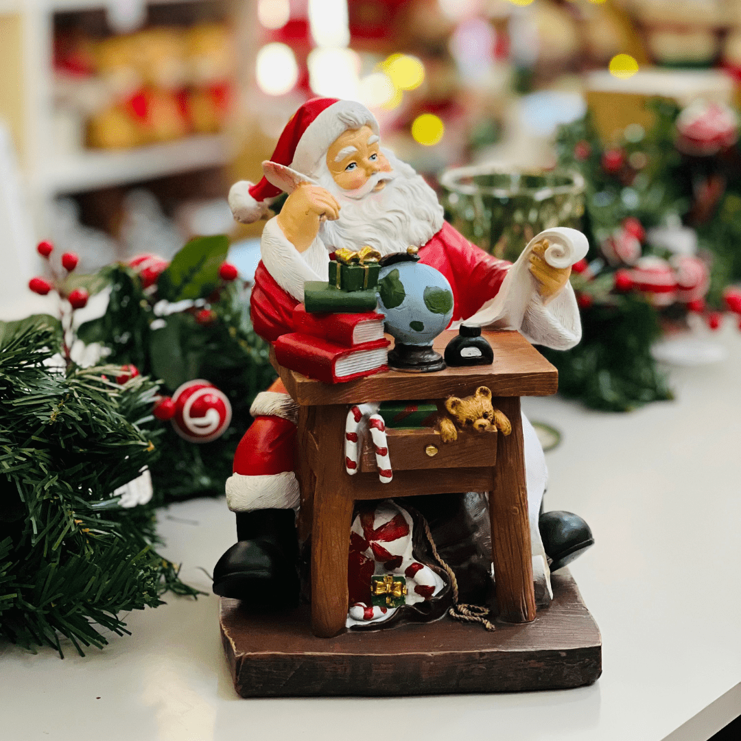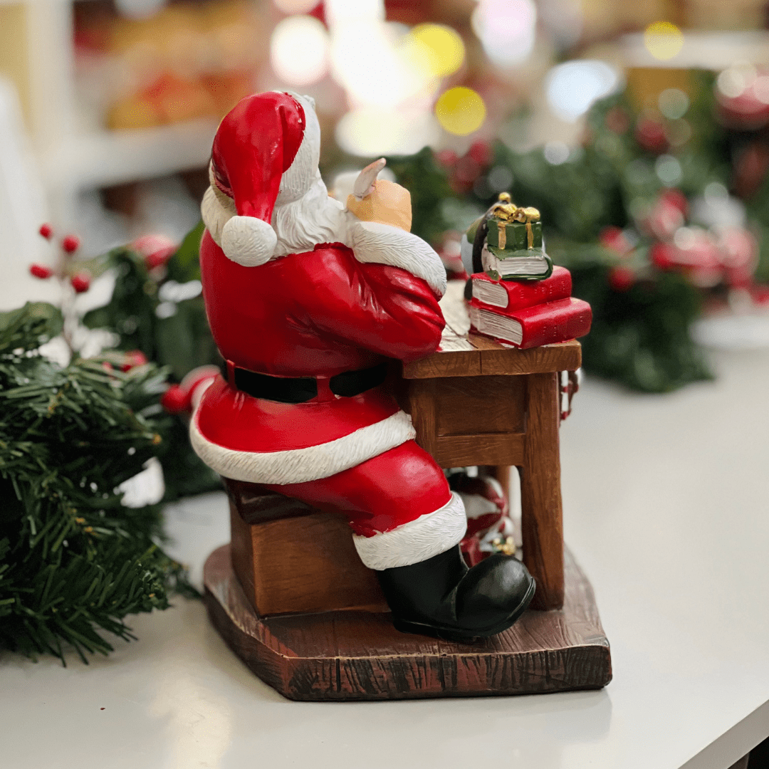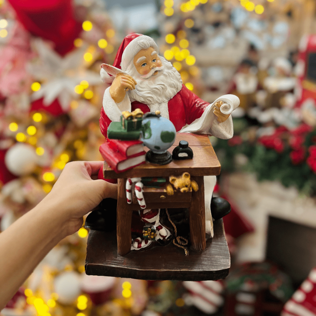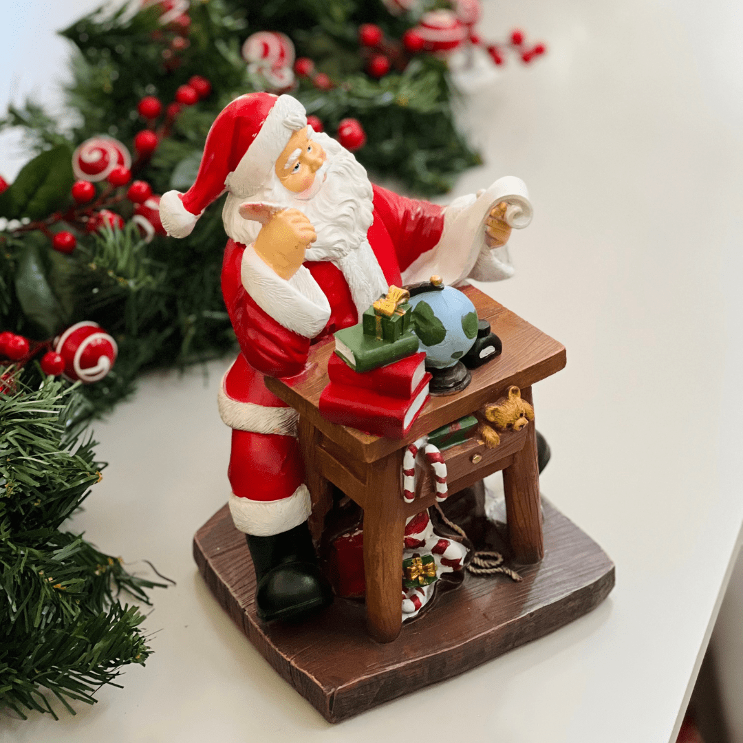 O Enfeite Natalino Lista de Presentes do Papai Noel de Resina 26x19cm é uma peça charmosa que simboliza o espírito natalino e a tradição das festas de fim de ano. Produzido em resina, apresenta o Papai Noel com sua clássica lista de presentes, em um design detalhado e acabamento de qualidade. Ideal para compor aparadores, mesas, prateleiras ou a decoração principal da sala, trazendo um toque alegre e festivo ao ambiente.