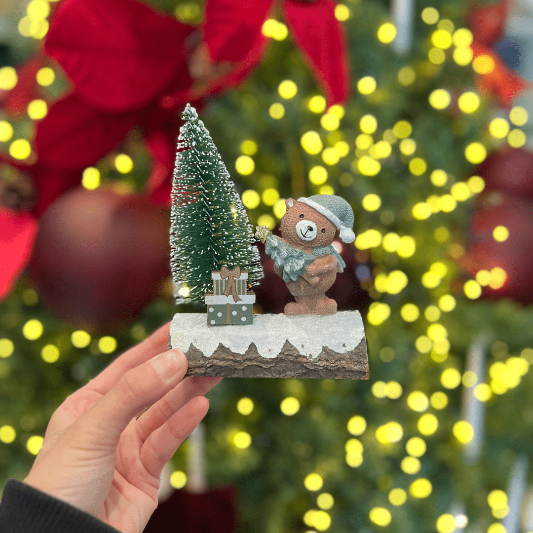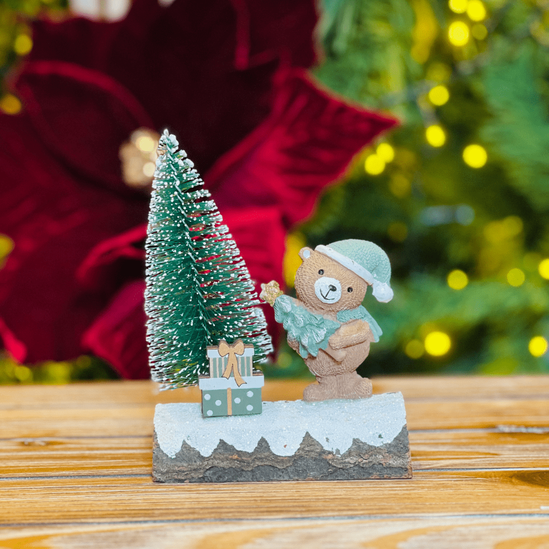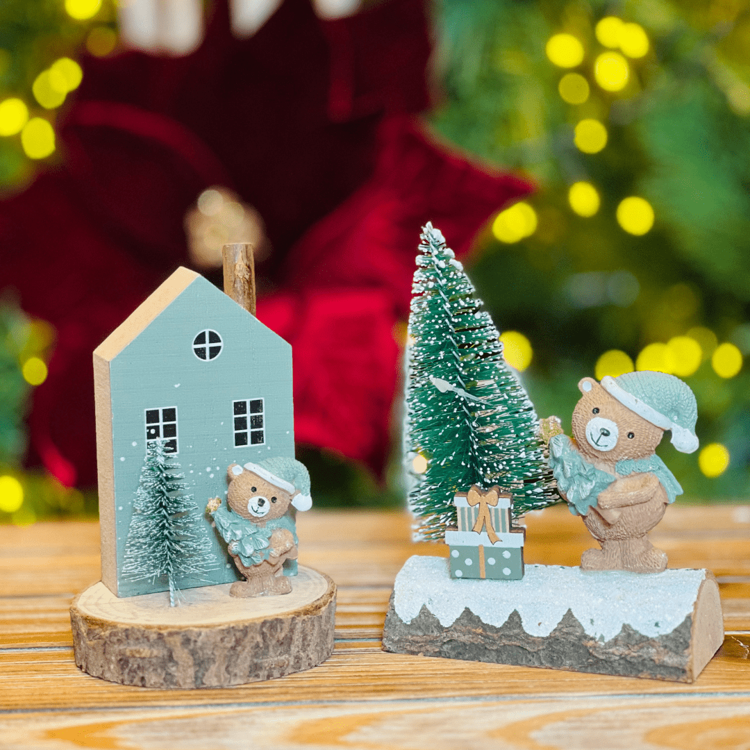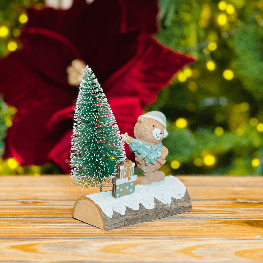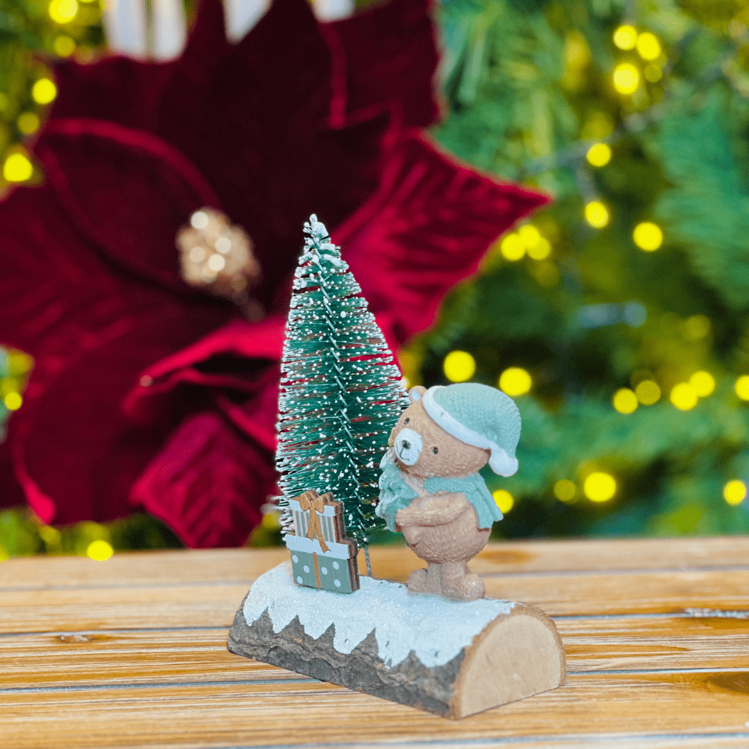O Enfeite Natalino Ursinho no Tronco é uma peça delicada e encantadora que traz charme e alegria para a decoração de Natal. Com detalhes trabalhados e um toque festivo na cor verde, é ideal para complementar mesas, prateleiras ou cenários temáticos, criando um ambiente acolhedor e cheio de magia natalina.