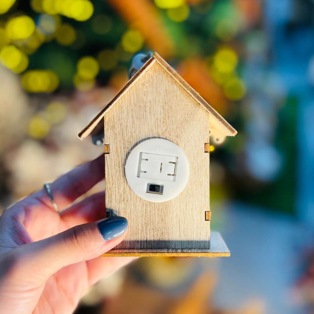 Material: MDF. Funciona à pilha para uma leve iluminação e fica ainda mais acolhedor.