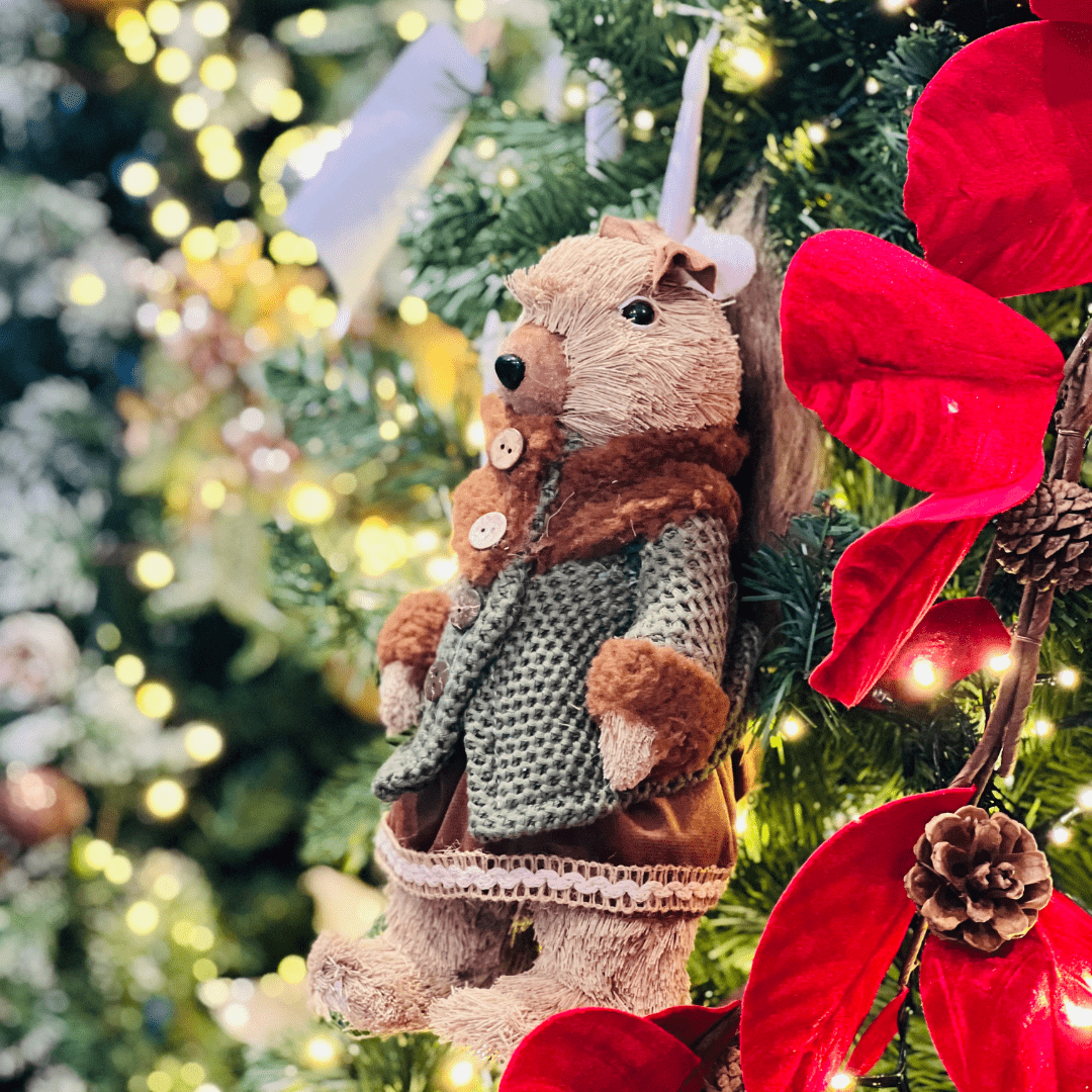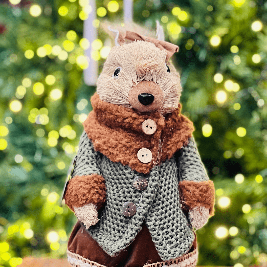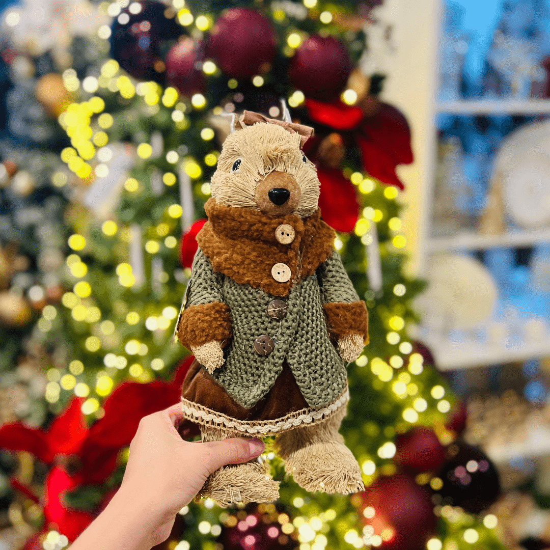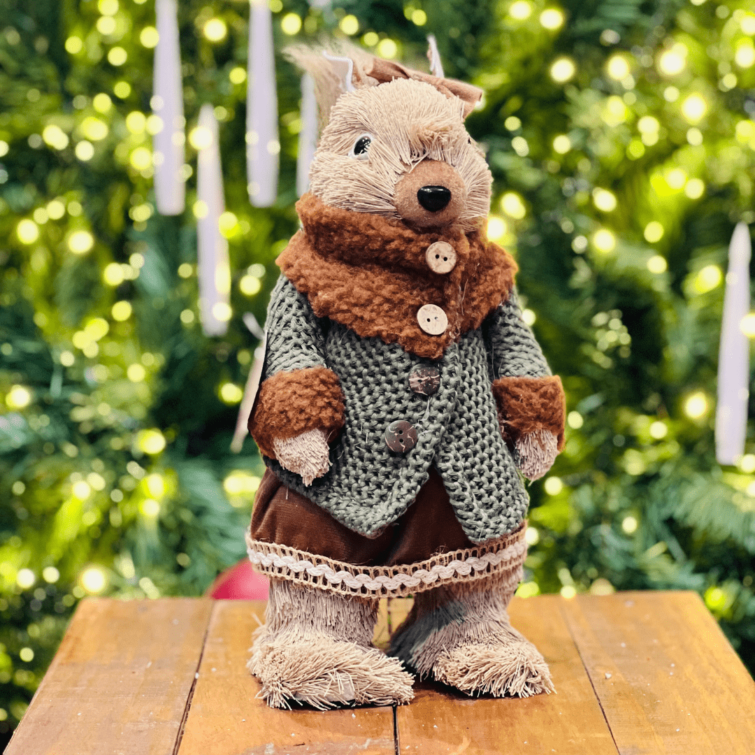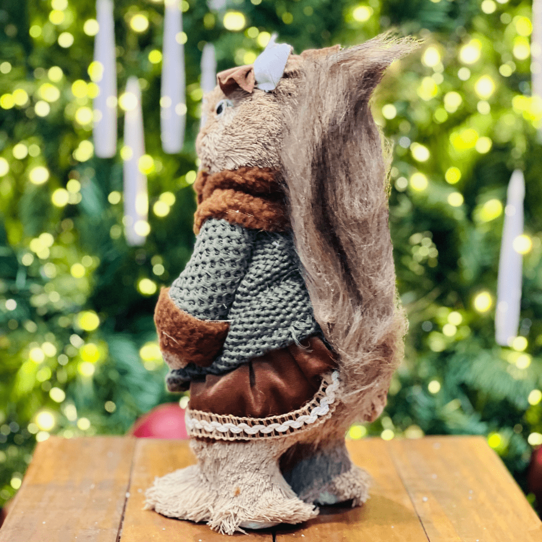 O Esquilo Natalino de Vestido Verde e Marrom é um enfeite delicado e encantador que traz charme e personalidade à decoração de Natal. Com 32cm de altura e 15cm de largura, apresenta detalhes delicados no vestido e acabamento de qualidade, sendo ideal para mesas, aparadores ou árvores natalinas, adicionando um toque lúdico e festivo ao ambiente.