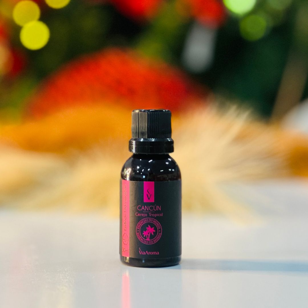 A Essência Hidrossolúvel Via Aroma Mundo Cancún oferece uma fragrância tropical, deliciosa e revigorante, com notas de cereja, perfeita para trazer um toque de frescor e sabor a ambientes e produtos.