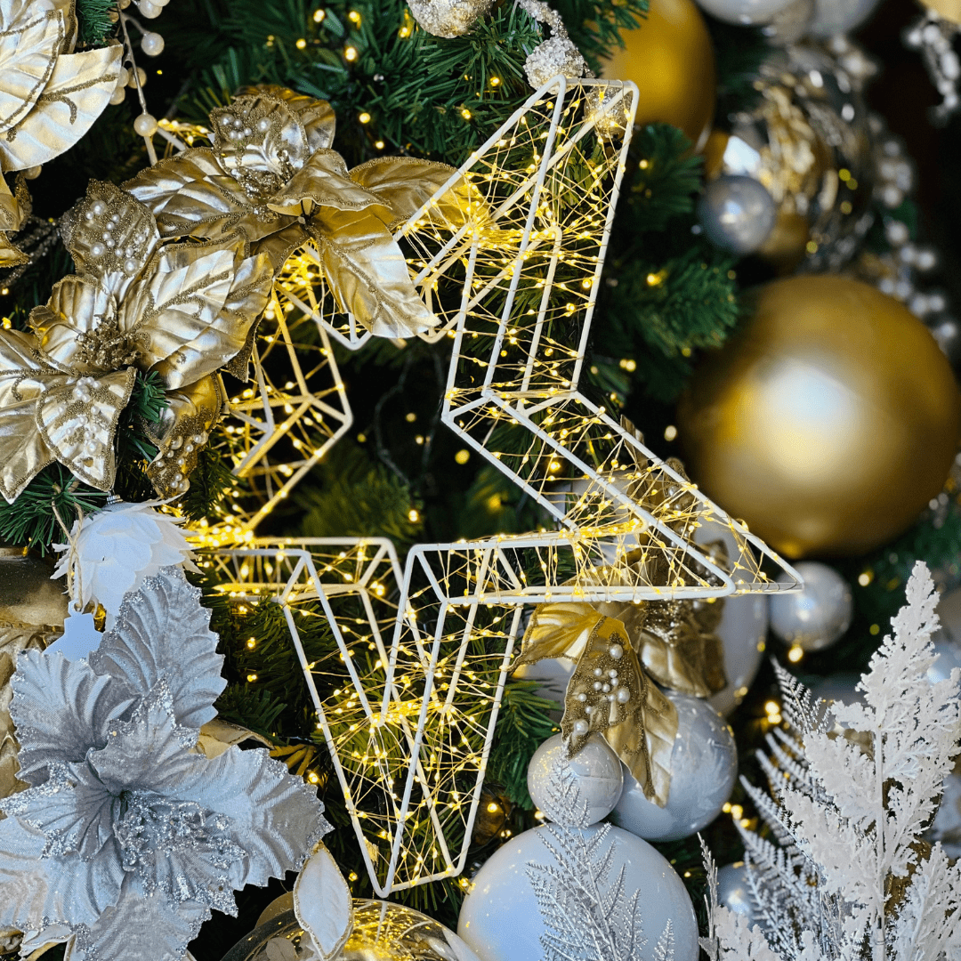 A Estrela de Led Bivolt Uso Externo 50x8x47,5cm é um enfeite natalino imponente, ideal para iluminar fachadas, jardins e ambientes externos com estilo e brilho. Com 720 LEDs na tonalidade branco quente, proporciona iluminação intensa e acolhedora, destacando o formato de estrela e criando um clima festivo e elegante. Compatível com rede elétrica bivolt, garante praticidade e segurança na instalação.
