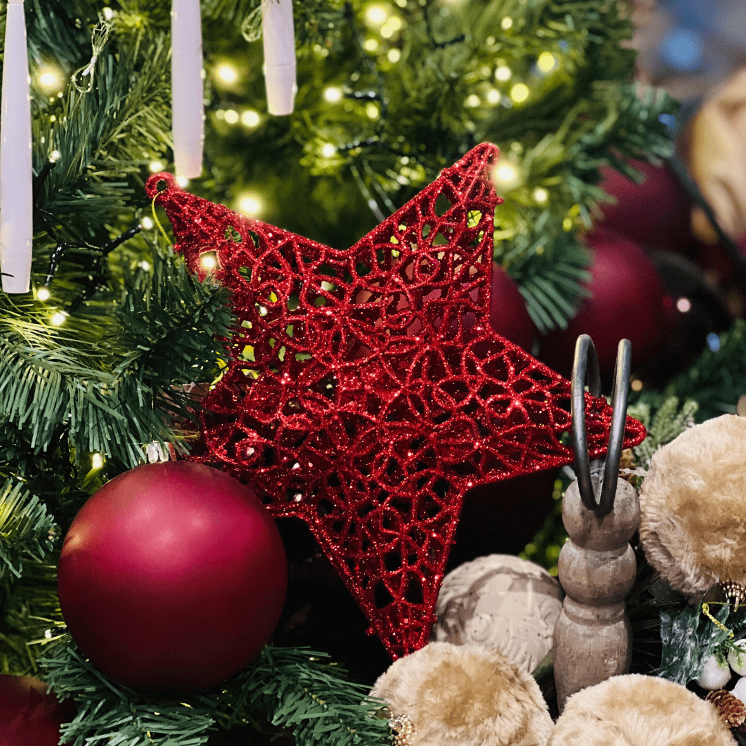 Adicione brilho e charme à sua decoração de Natal com esta estrela natalina vermelha com acabamento em glitter. Perfeita para compor a árvore, guirlandas ou arranjos decorativos, ela traz um toque festivo e elegante, destacando-se em qualquer ambiente.