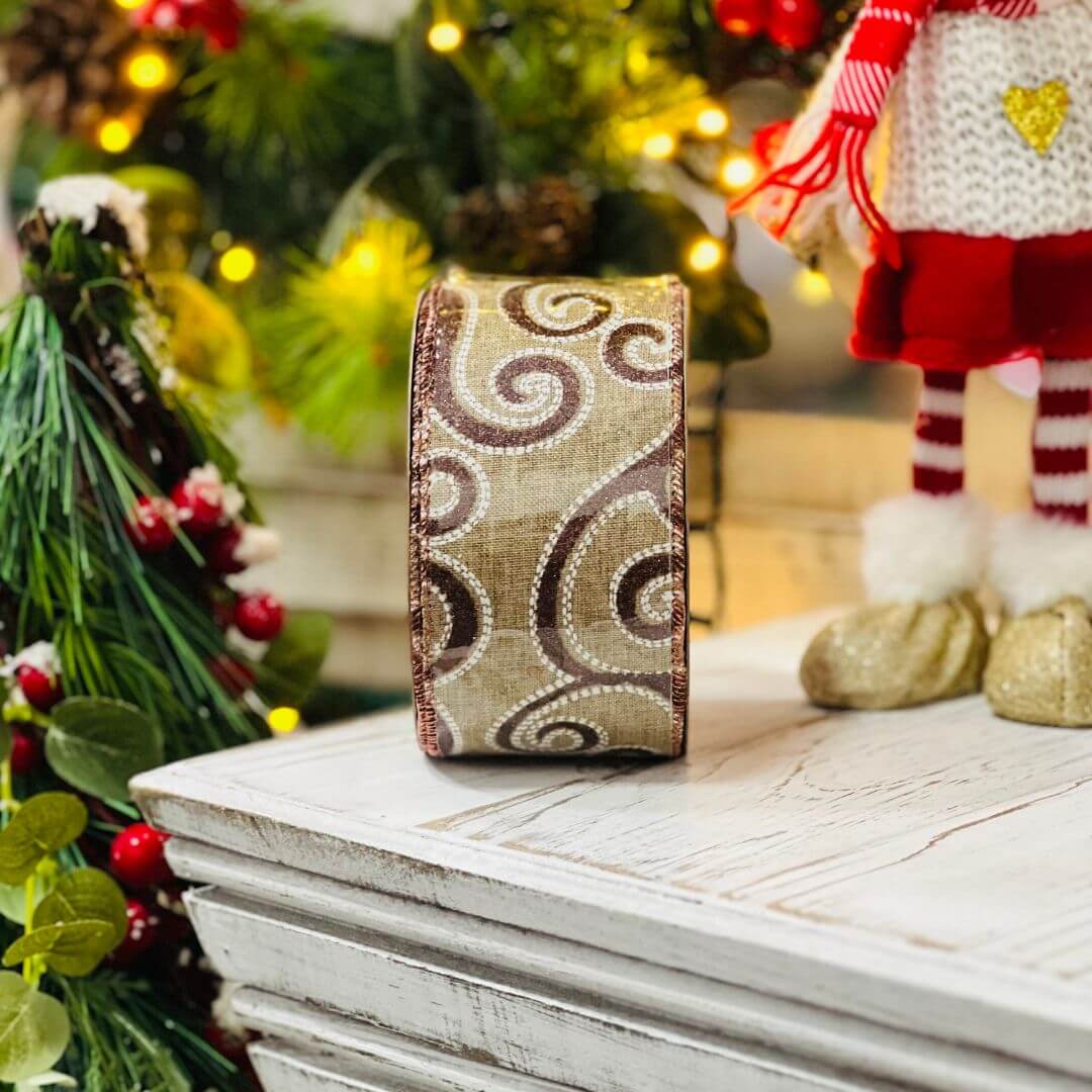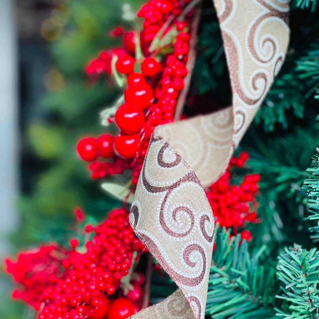 Fita decorativa com borda aramada e detalhes delicados que adicionam charme e sofisticação à sua decoração. Ideal para laços, guirlandas, embalagens, arranjos florais e projetos artesanais. A estrutura com arame nas bordas facilita a modelagem e mantém o formato desejado com mais firmeza.
