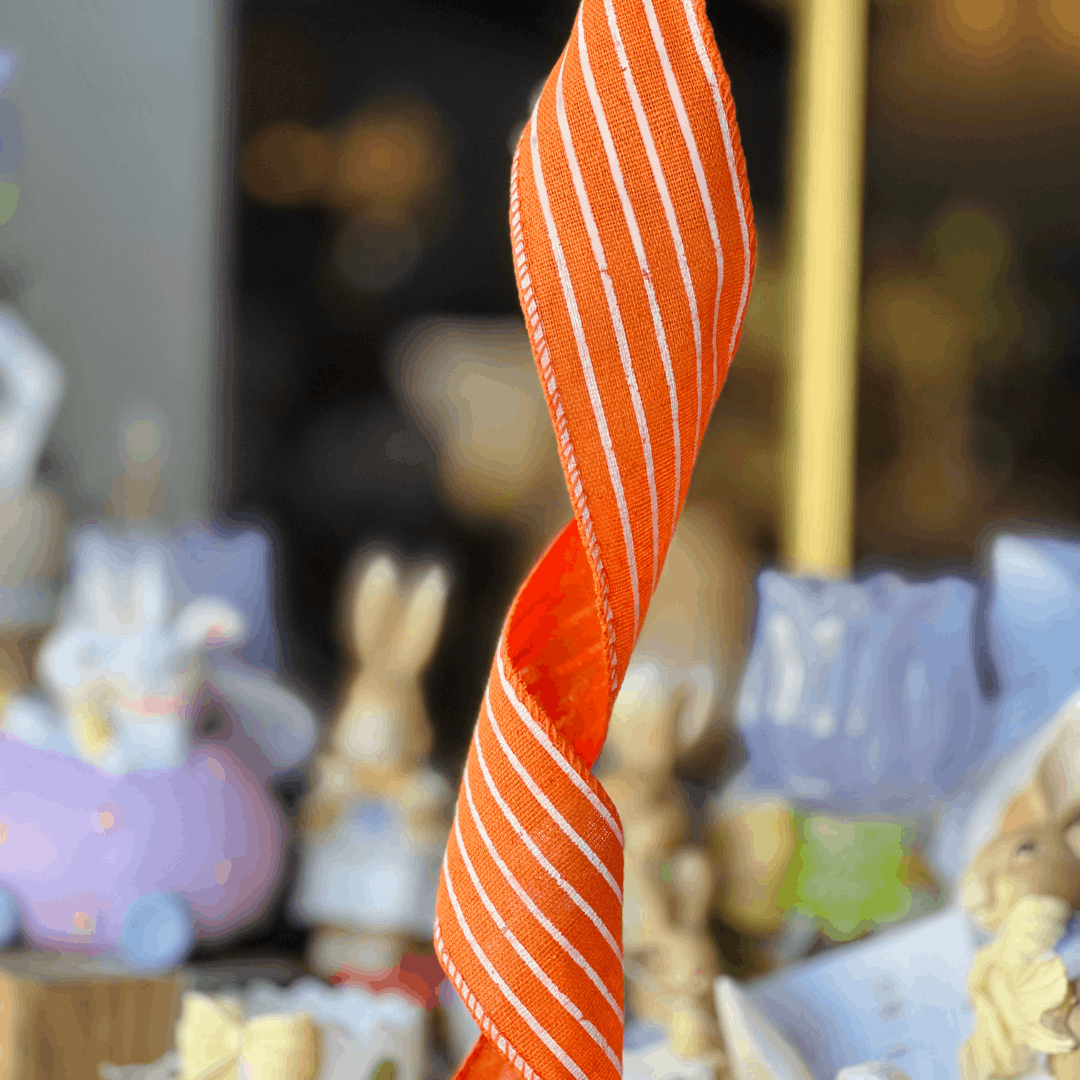 A fita aramada decorativa listrada laranja é um item versátil e cheio de estilo para composições decorativas. Com estampa listrada que destaca ainda mais a cor vibrante, ela traz um toque alegre e sofisticado para arranjos, guirlandas, embalagens de presentes, cestas decorativas e trabalhos artesanais. Suas bordas aramadas facilitam a modelagem de laços e detalhes, permitindo que a fita mantenha o formato desejado com mais firmeza. Ideal para decorações temáticas, especialmente de Páscoa, primavera ou projetos criativos de artesanato.