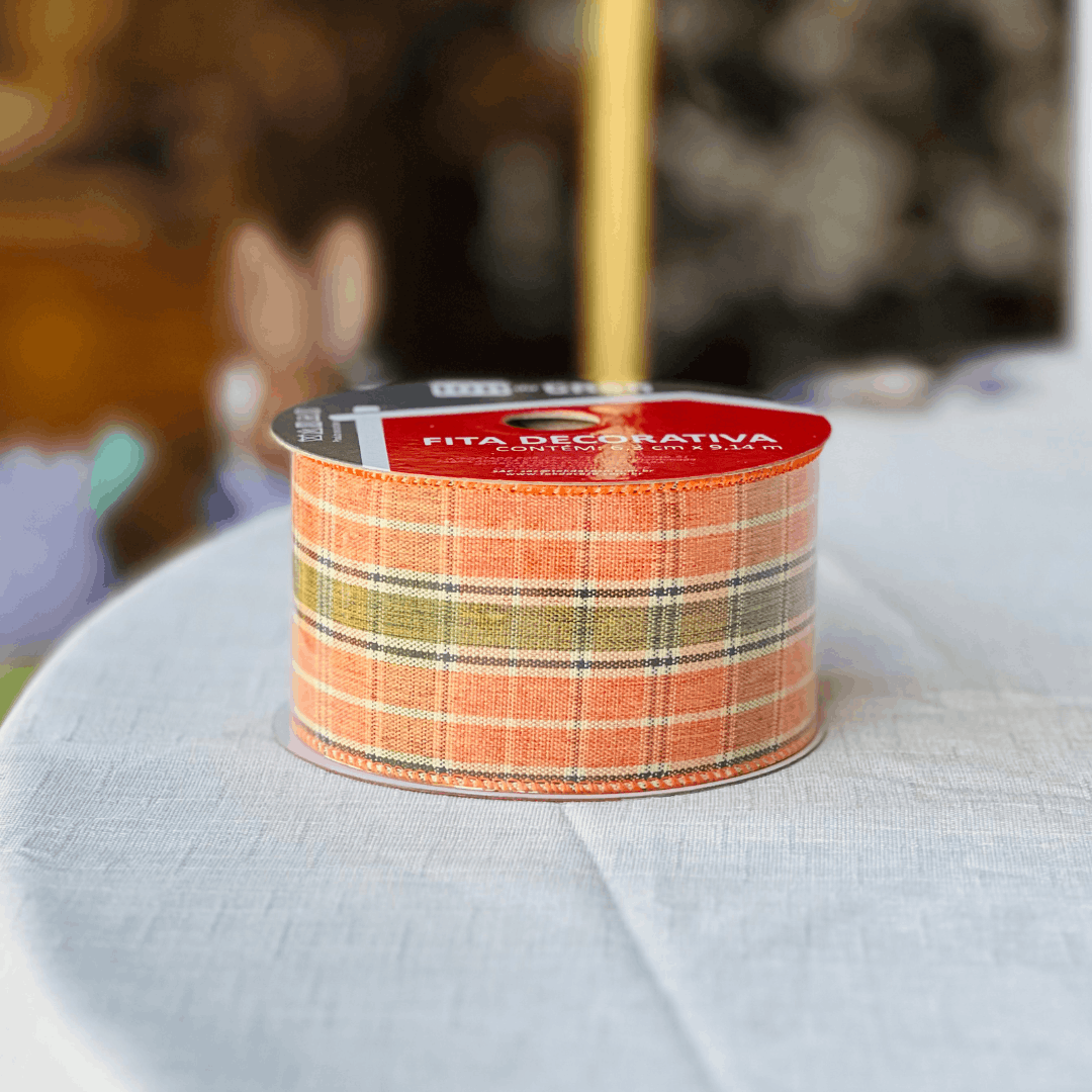A Fita Aramada Decorativa Xadrez Laranja é ideal para trazer um toque alegre e elegante às suas decorações. Com estampa clássica xadrez e acabamento com arame nas bordas, permite criar laços volumosos e moldar facilmente diferentes composições decorativas. É perfeita para enfeitar guirlandas, cestas, embalagens de presente, arranjos florais e projetos artesanais, agregando charme e destaque em qualquer ocasião.