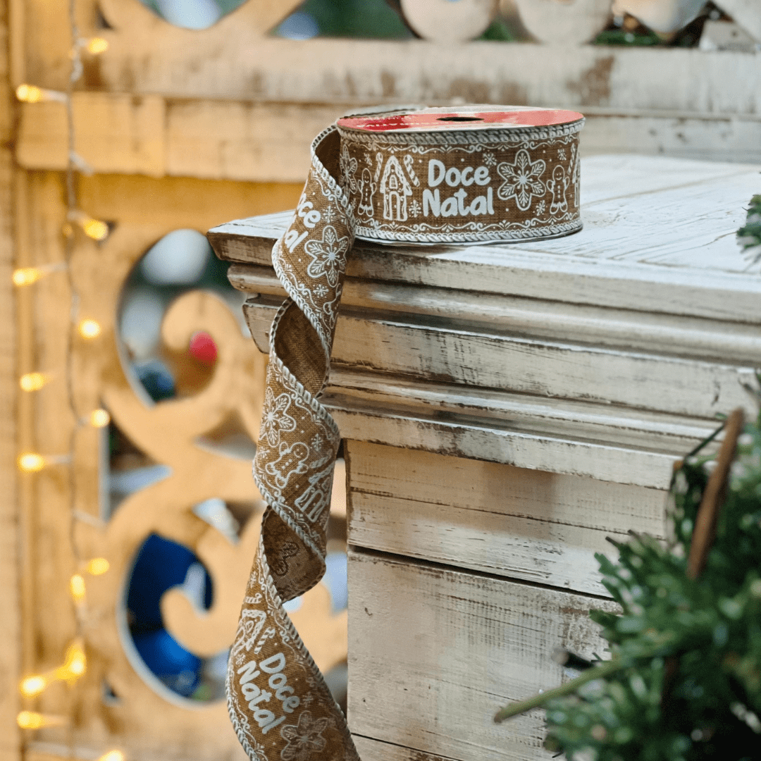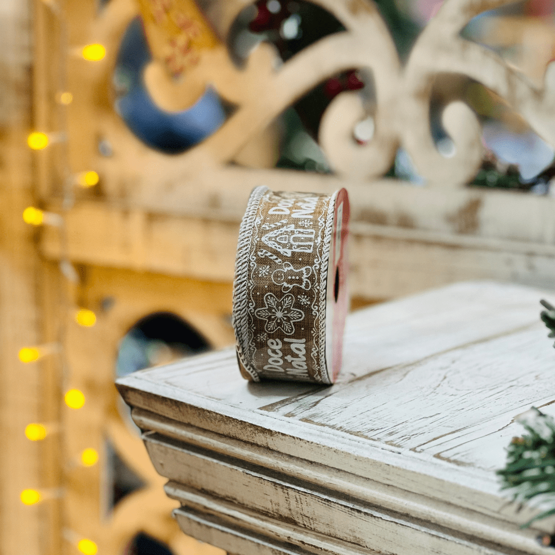 Fita Aramada Gingerbread Doce Natal 3,8cm x 9,14cm