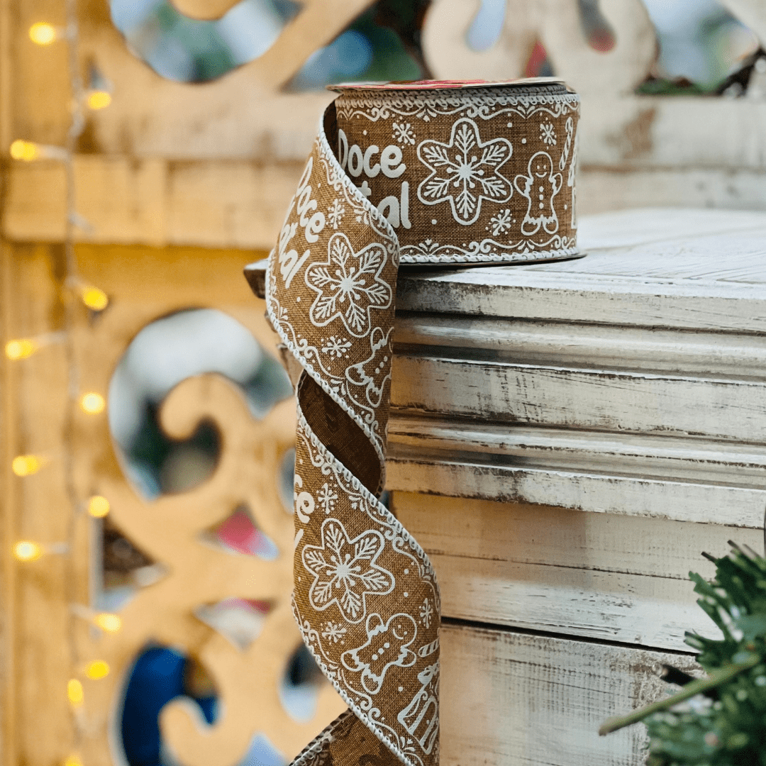 Fita Aramada Gingerbread Doce Natal 6,3cm x 9,14m
