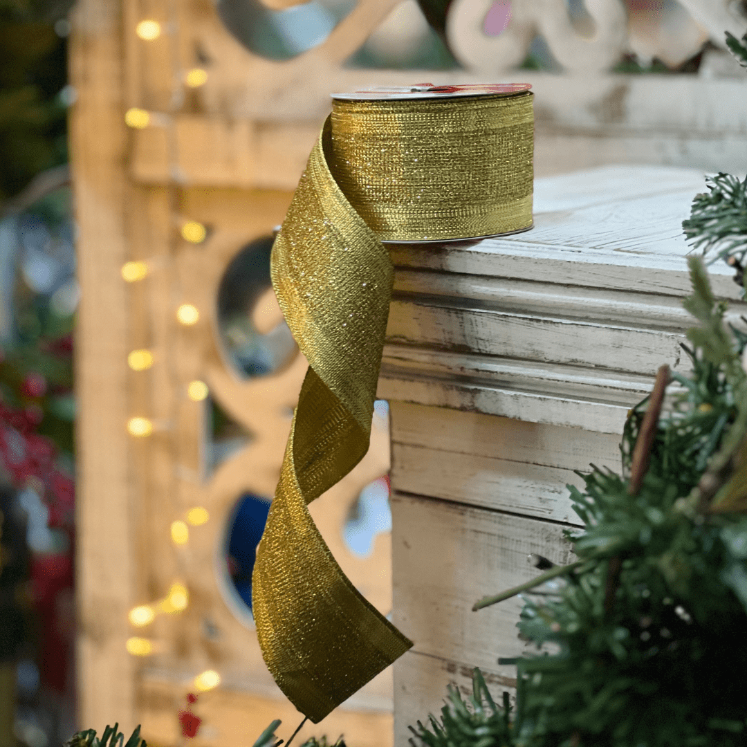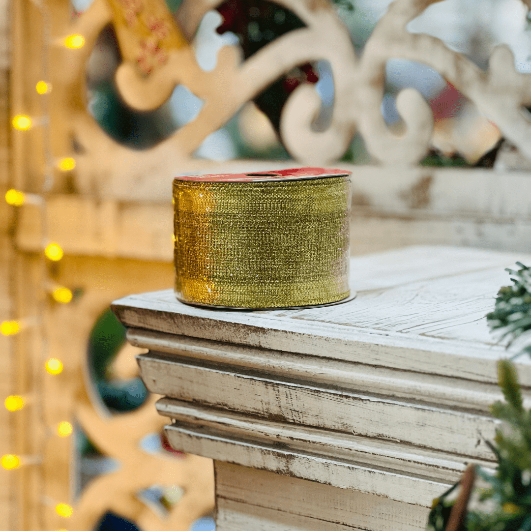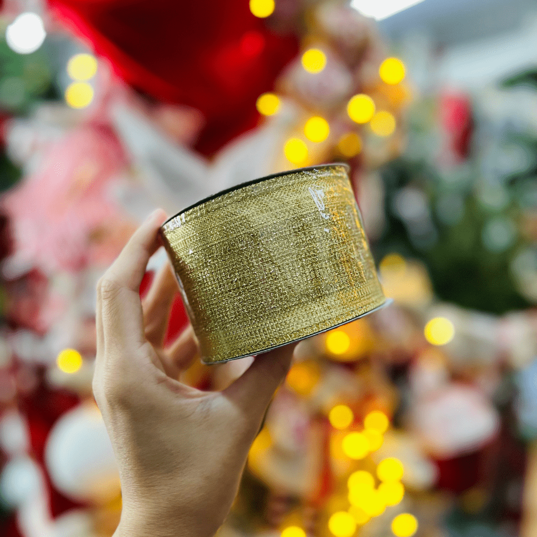 Fita Aramada Natalina Dourada 6,3cm x 9,14m