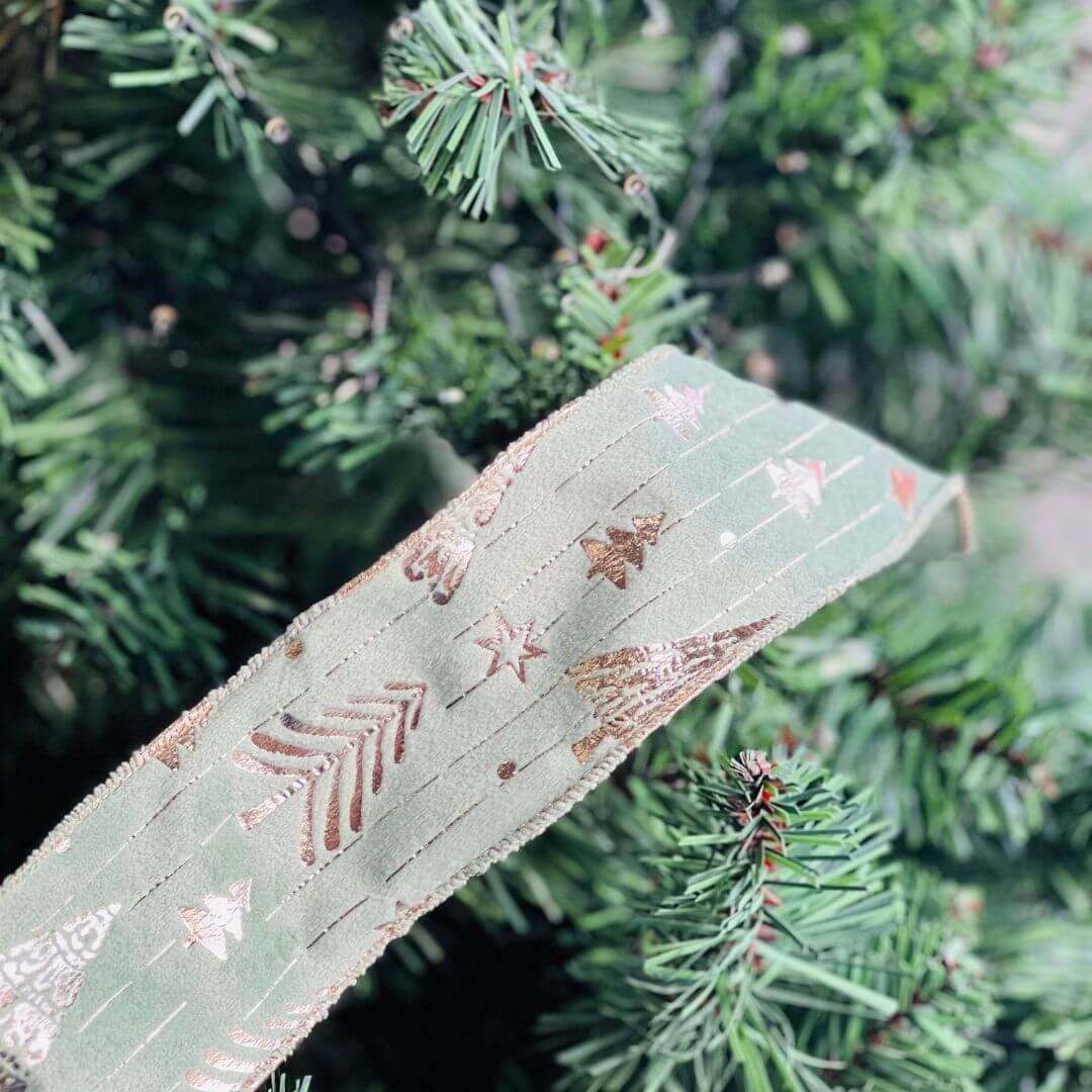 Fita Aramada Veludo Verde com Detalhes de Pinheiros – 6,3 x 914 cm