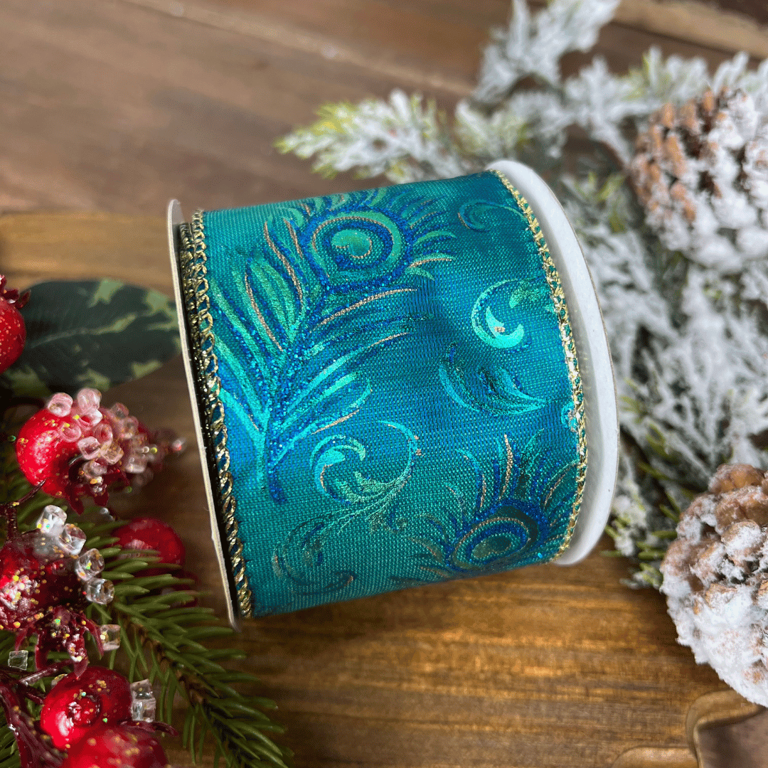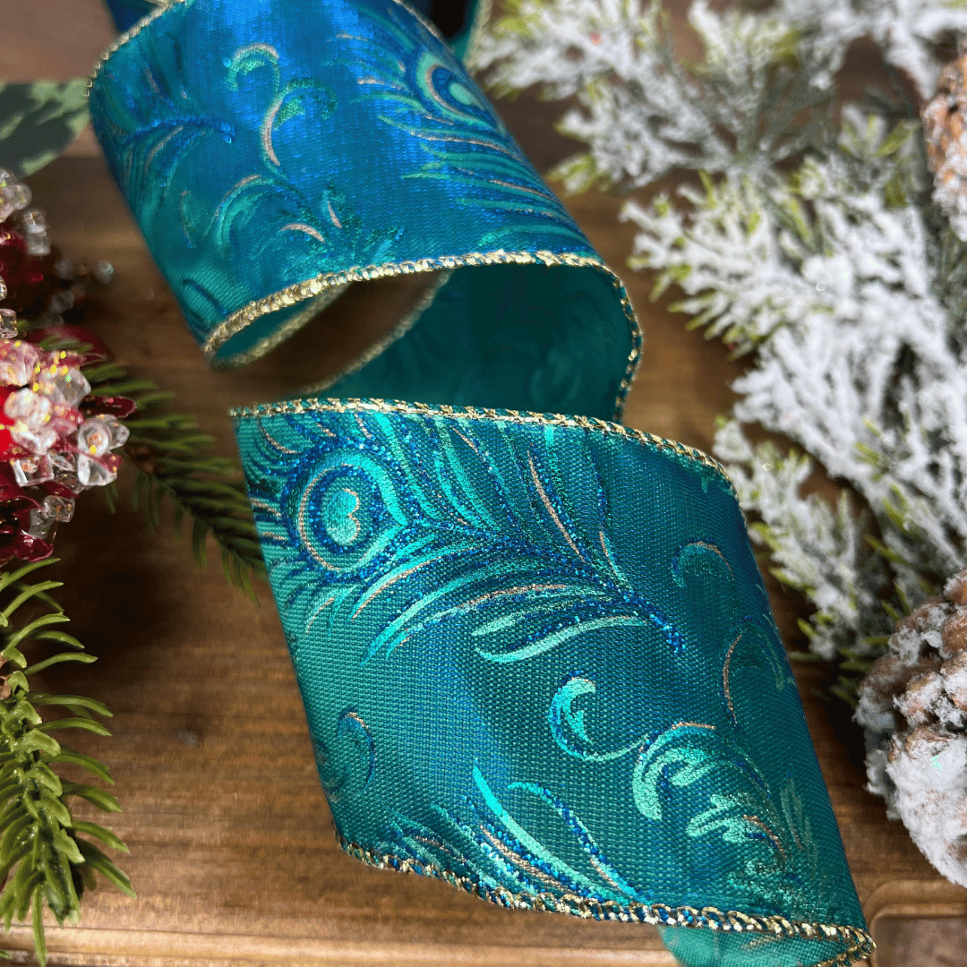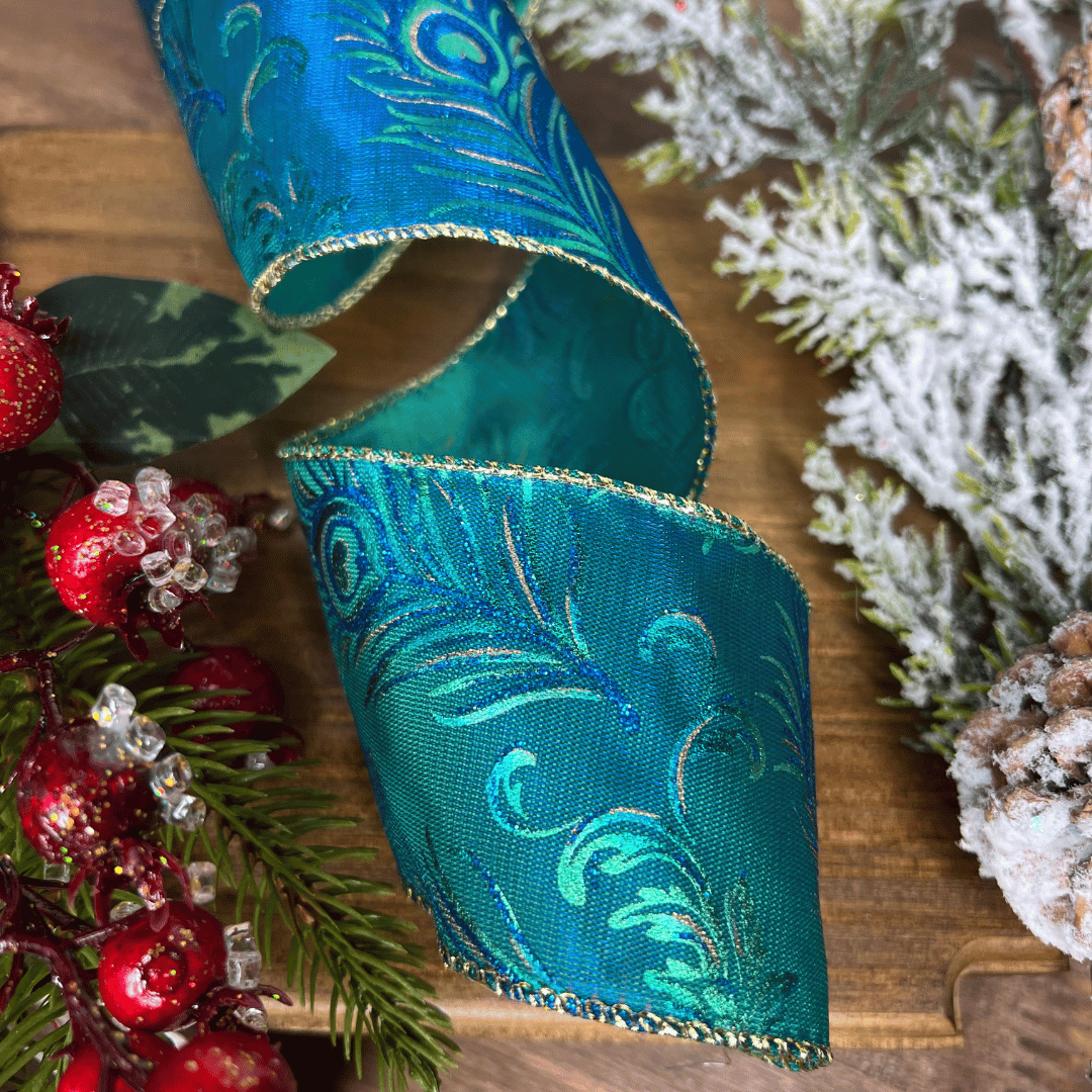 Fita Decorativa Aramada Azul Pavao 6,3cmx9,14m