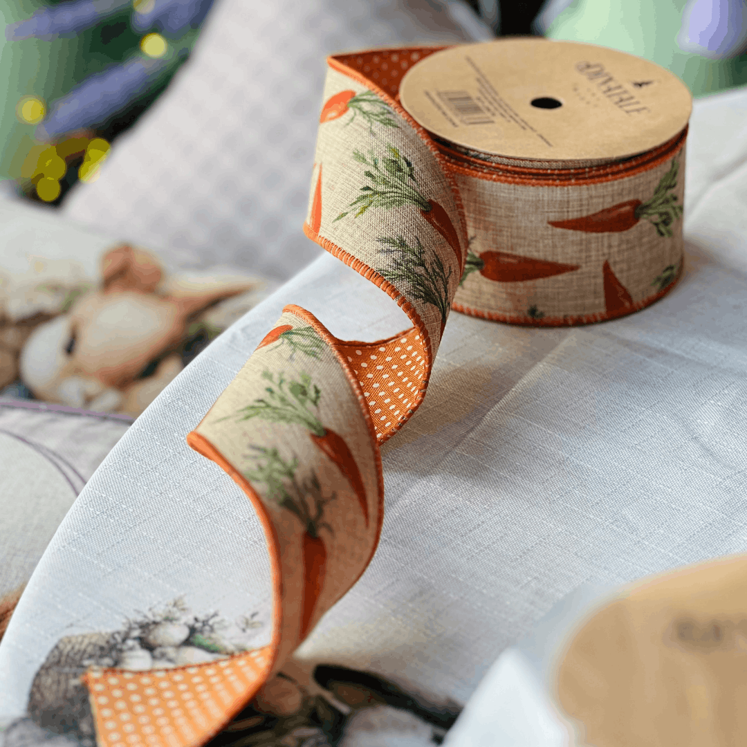 Fita Decorativa Aramada Cenouras 6,3cm x 9,14m – Dupla Face