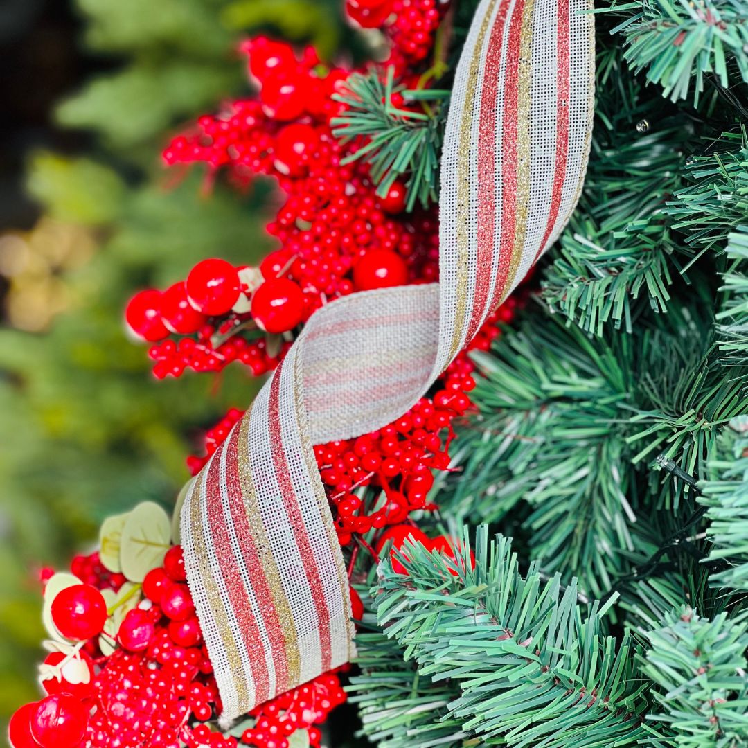 A Fita Natalina Com Glitter é perfeita para deixar sua decoração ainda mais charmosa e iluminada. Com acabamento brilhoso e delicado, ela pode ser usada para enfeitar árvores de Natal, guirlandas, arranjos, embalagens de presente e muito mais. Um detalhe especial que transforma qualquer ambiente com o espírito natalino.
