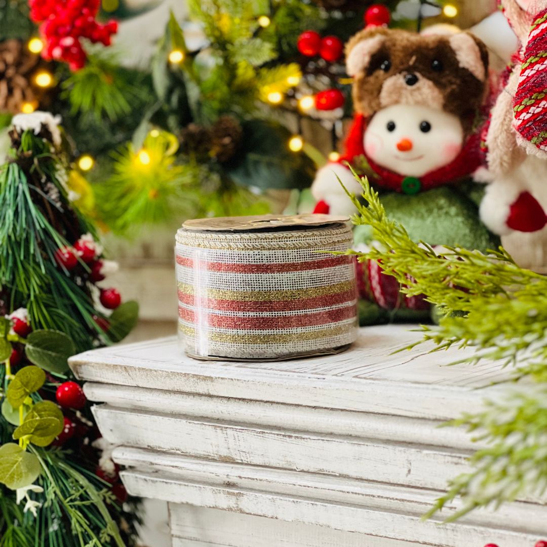 Fita Natalina Com Glitter - 6,3cm x 9,14m