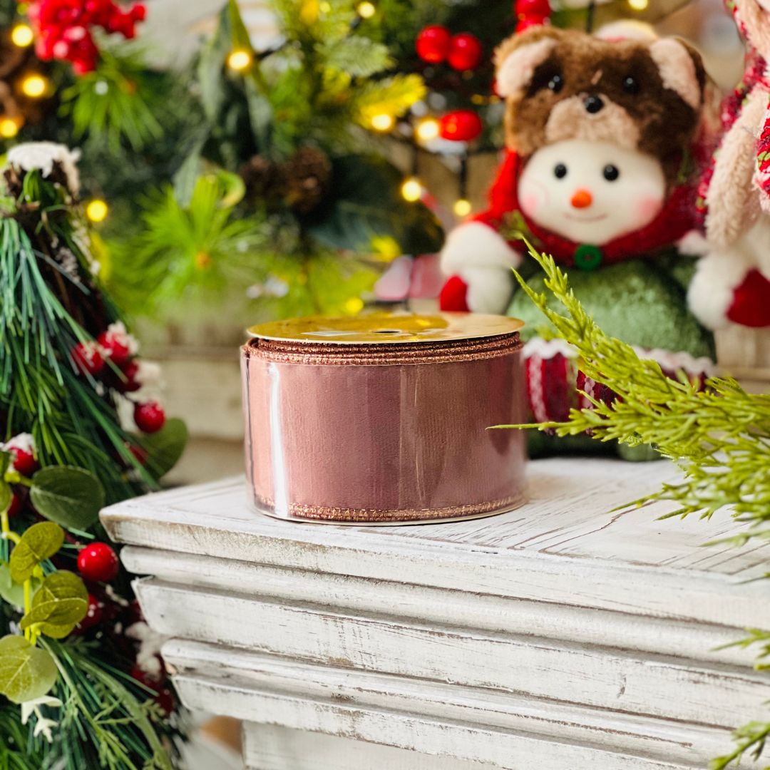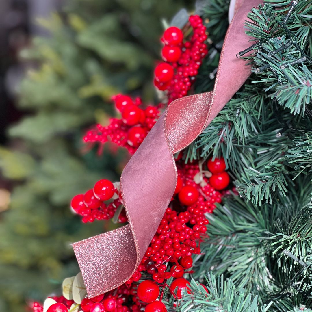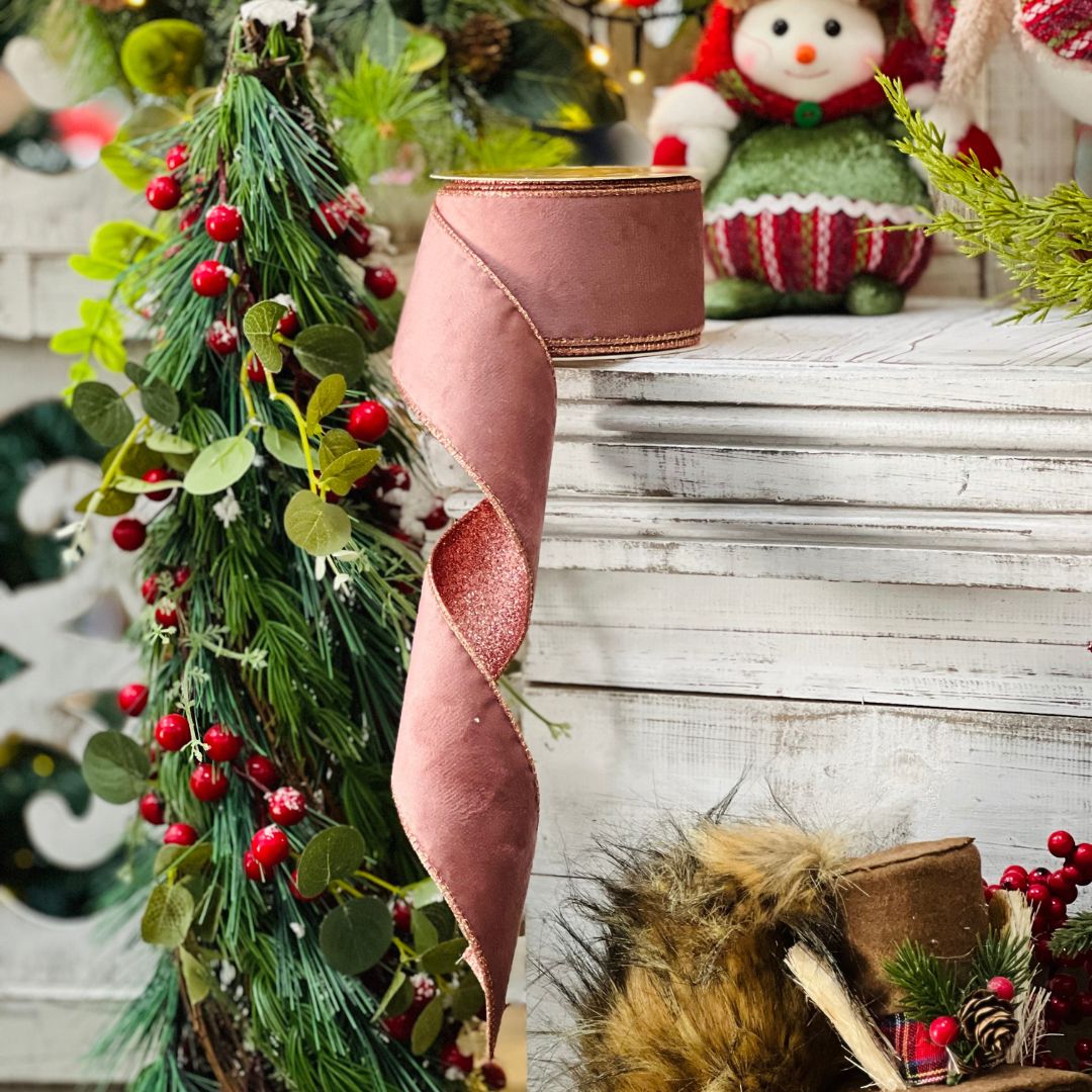 Fita Natalina Rose Aveludado Dupla Face – 6,3cm x 9,14m