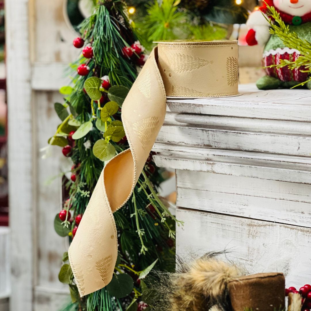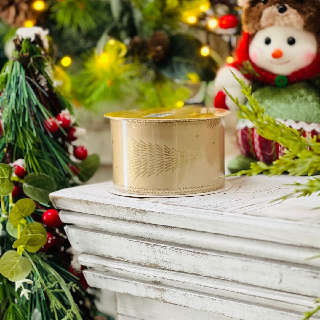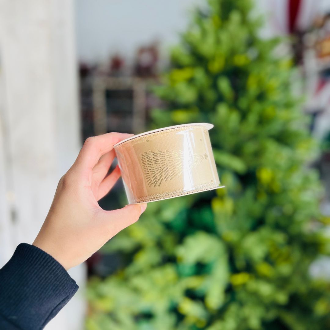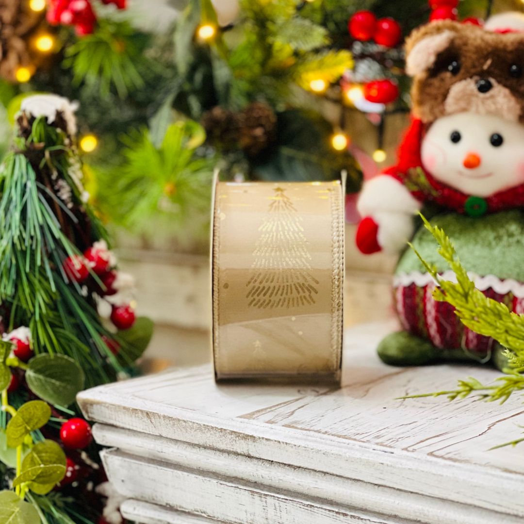 Fita Natalina Veludo Champagne - 6,3cm x 9,14m