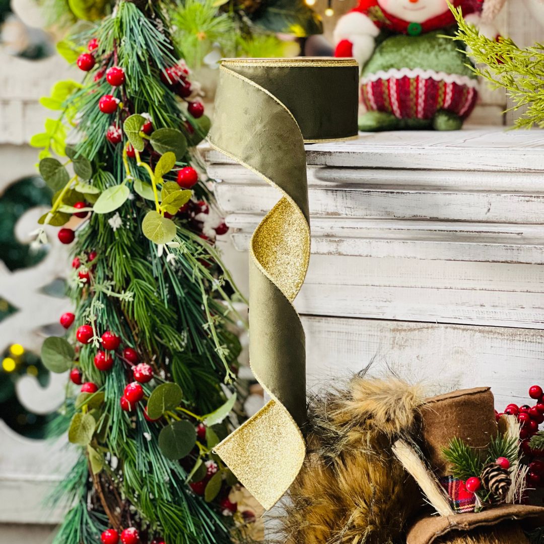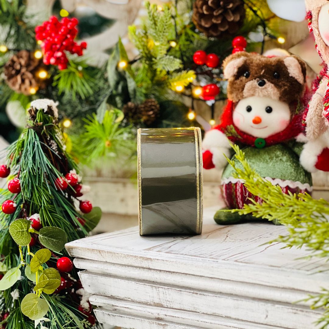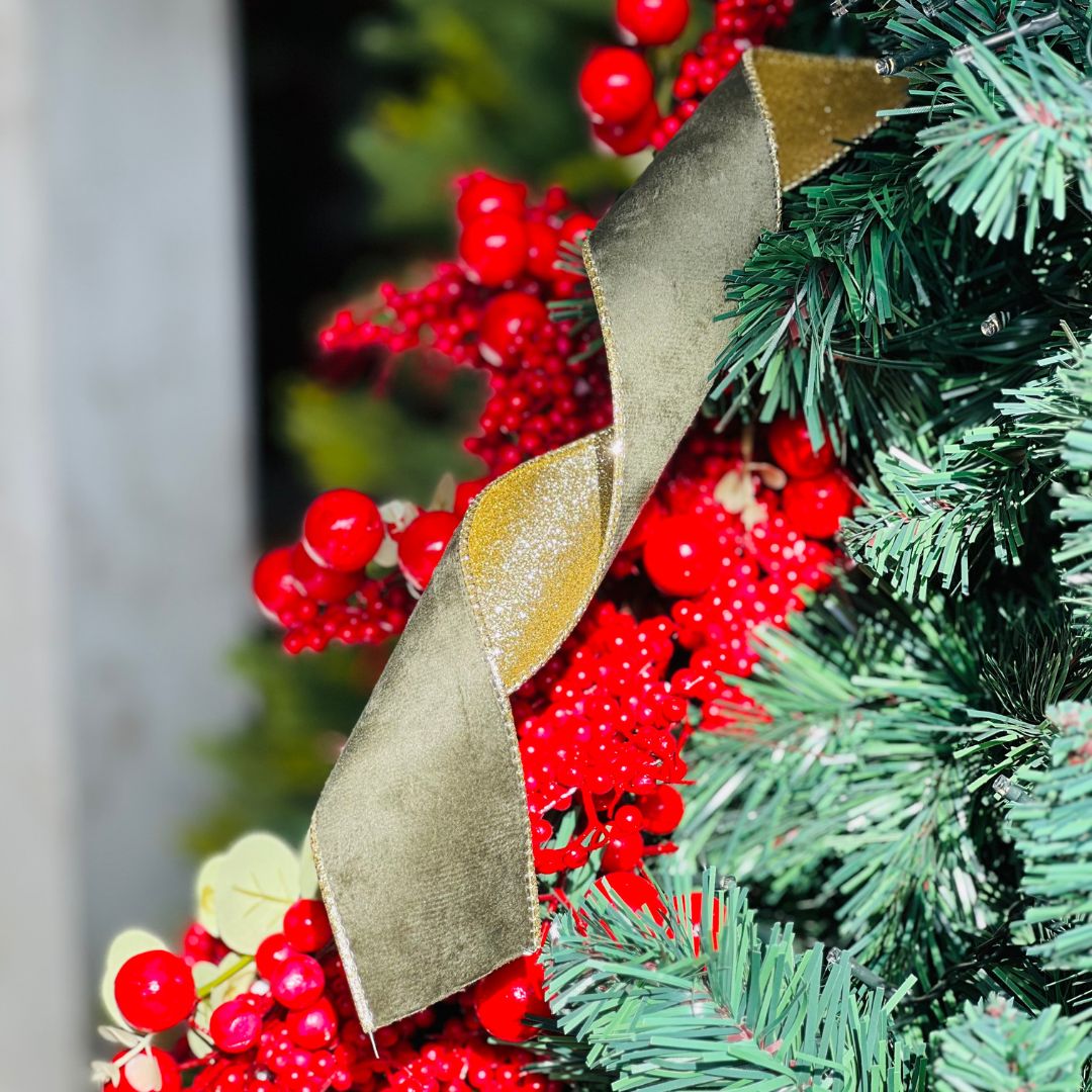 Fita Natalina Verde Musgo Aveludado Dupla Face – 6,3cm x 9,14m