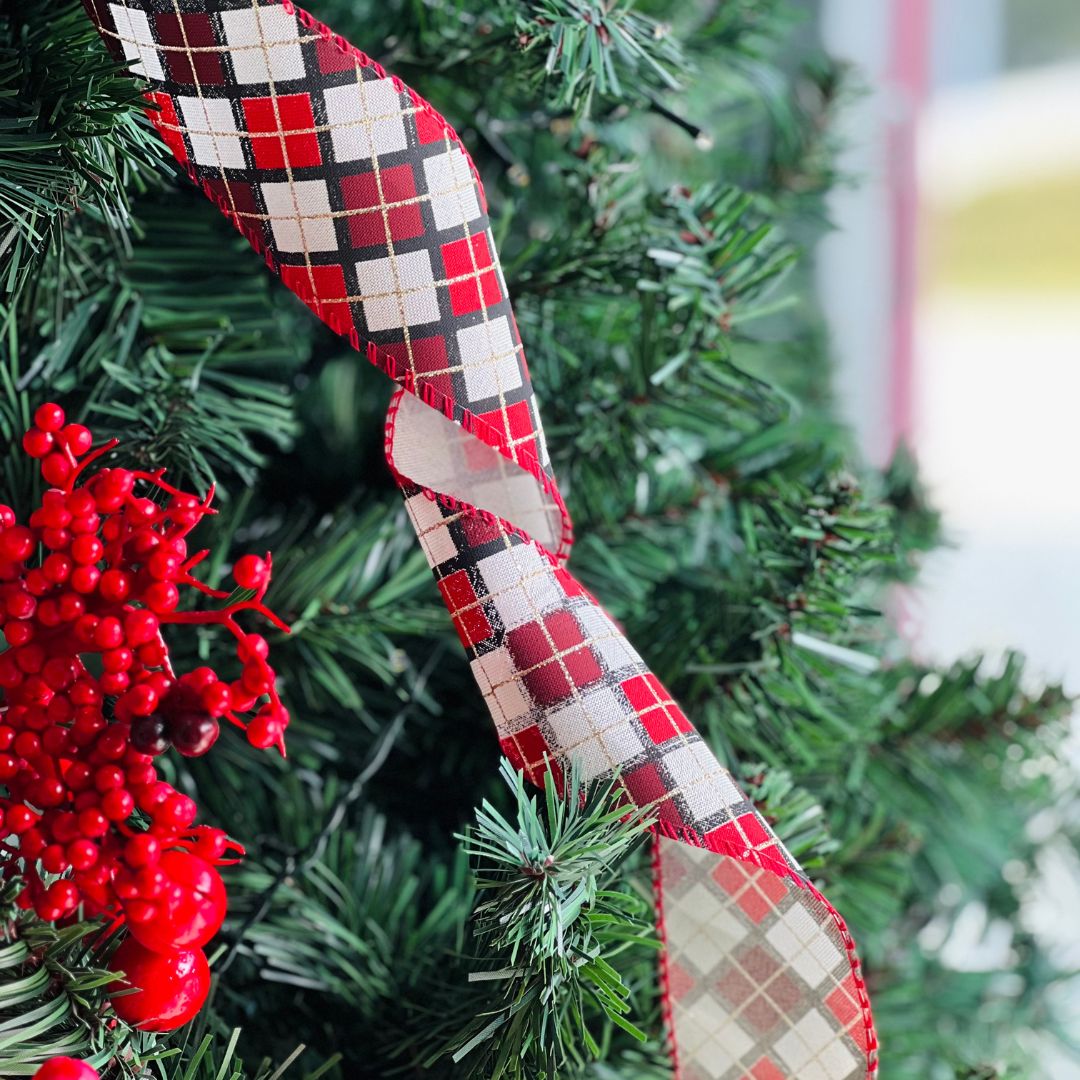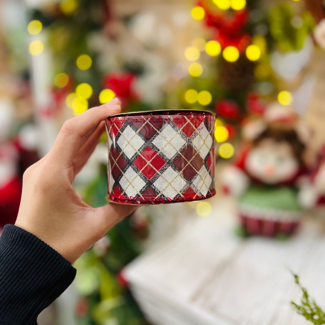 A Fita Natalina Xadrez traz o charme clássico do xadrez em tons tradicionais que remetem à essência do Natal. Ideal para enfeitar árvores, guirlandas, arranjos de mesa e embrulhos especiais. Seu acabamento com bordas aramadas facilita a criação de laços firmes e volumosos, garantindo um visual encantador.