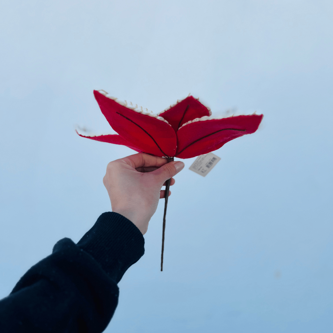 Flor Natalina Bico de Papagaio Aveludado Vermelho 30x19cm