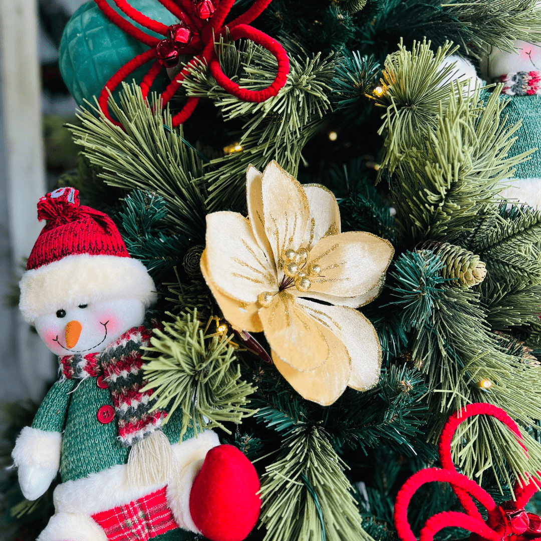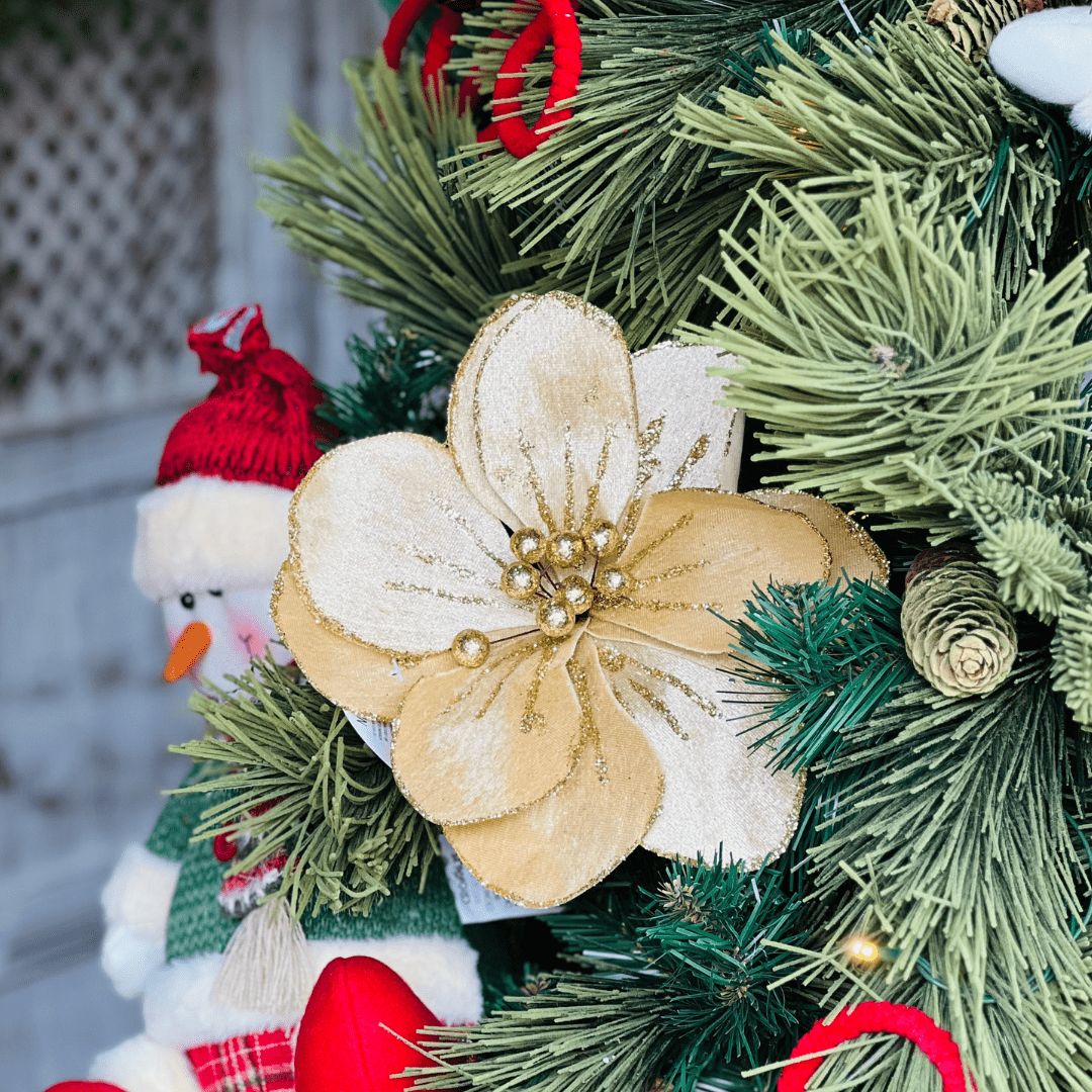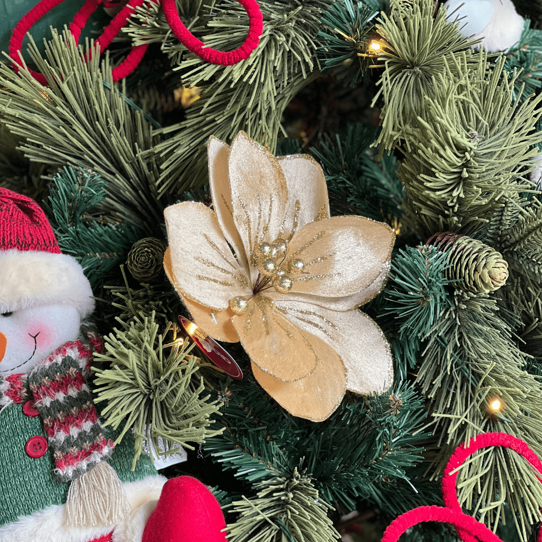 Flor Natalina Magnólia Dourada 24cm