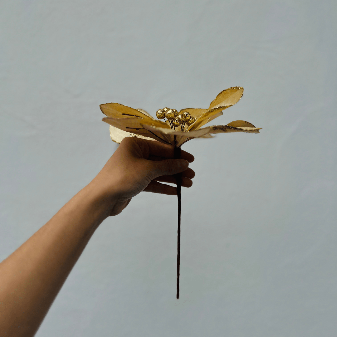 Flor Natalina Magnolia Dourada 24cm